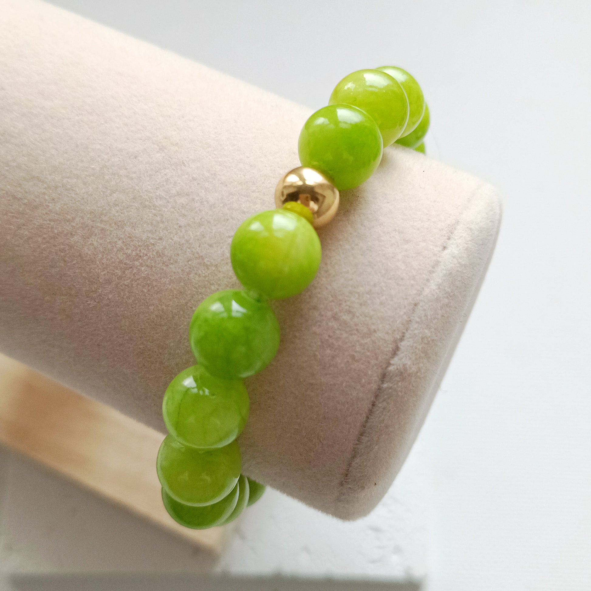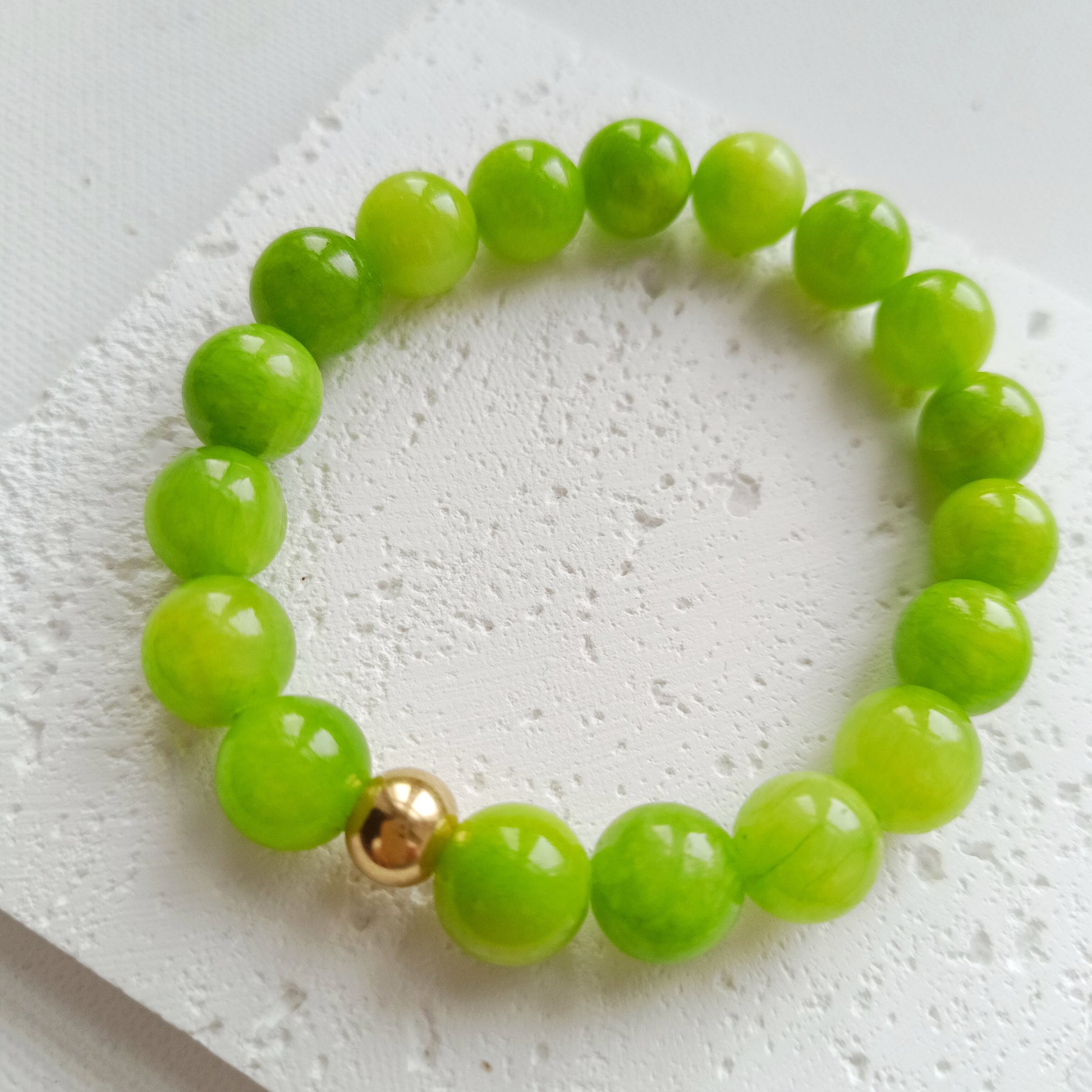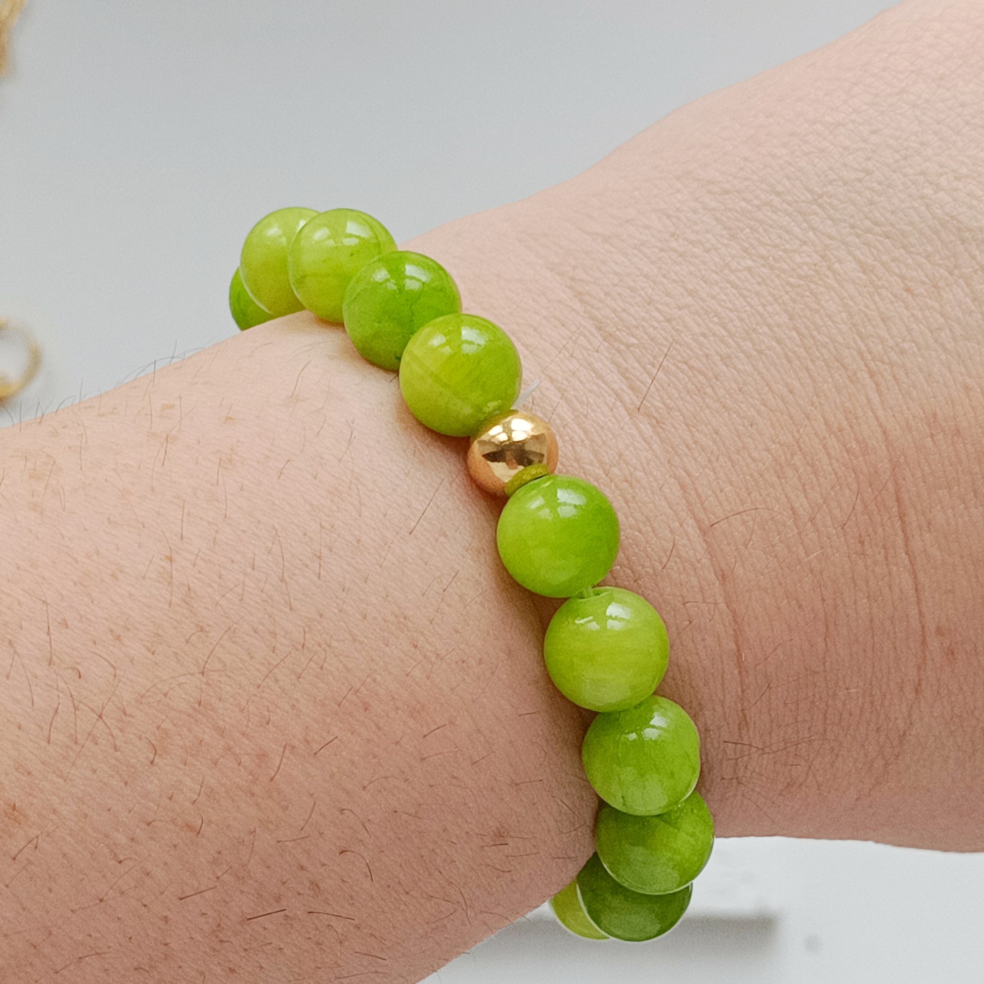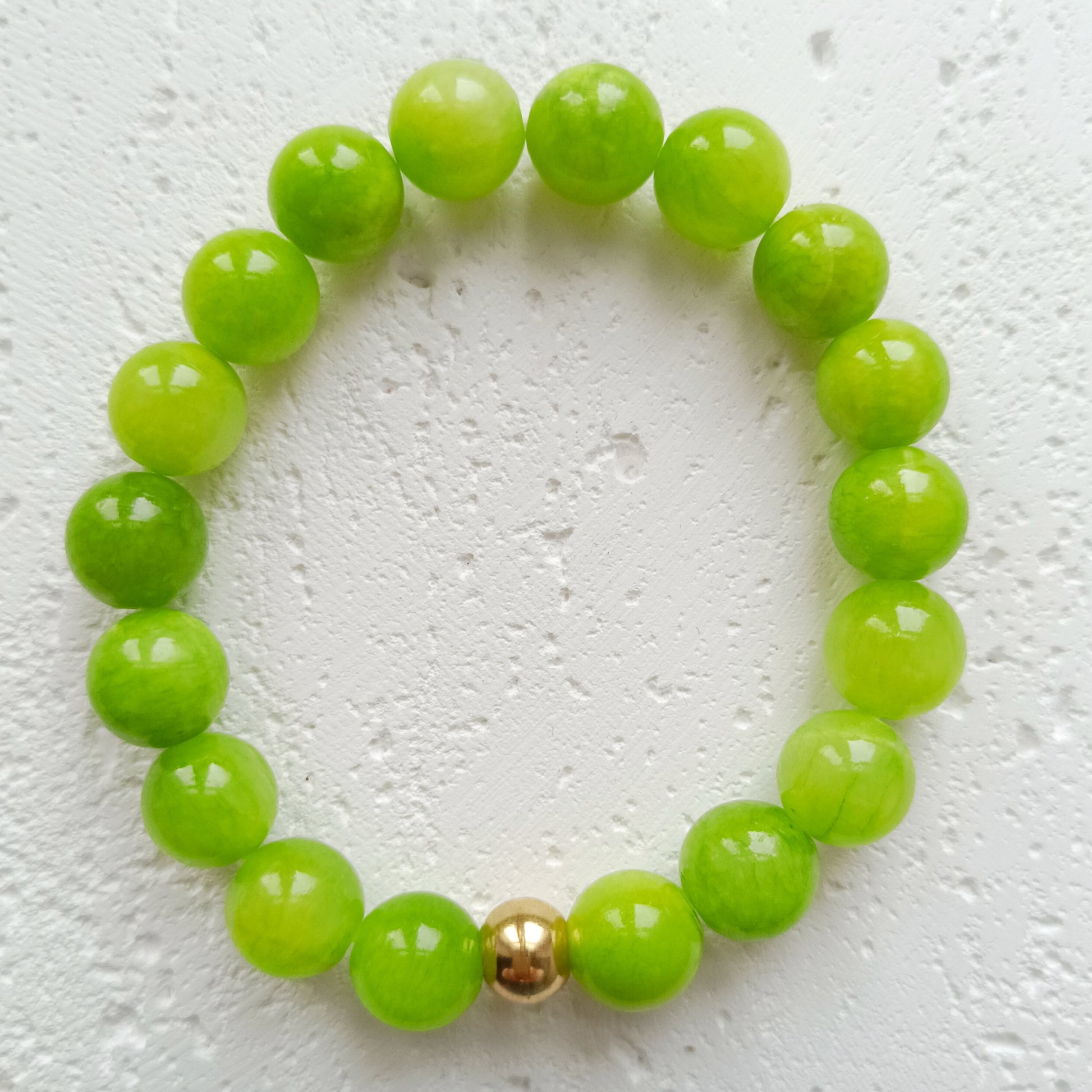 Statement Armband aus gefärbten Jadekugeln in apfelgrün