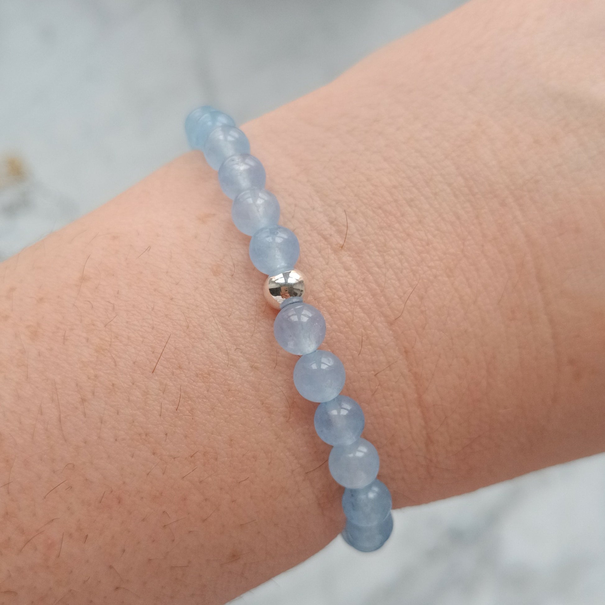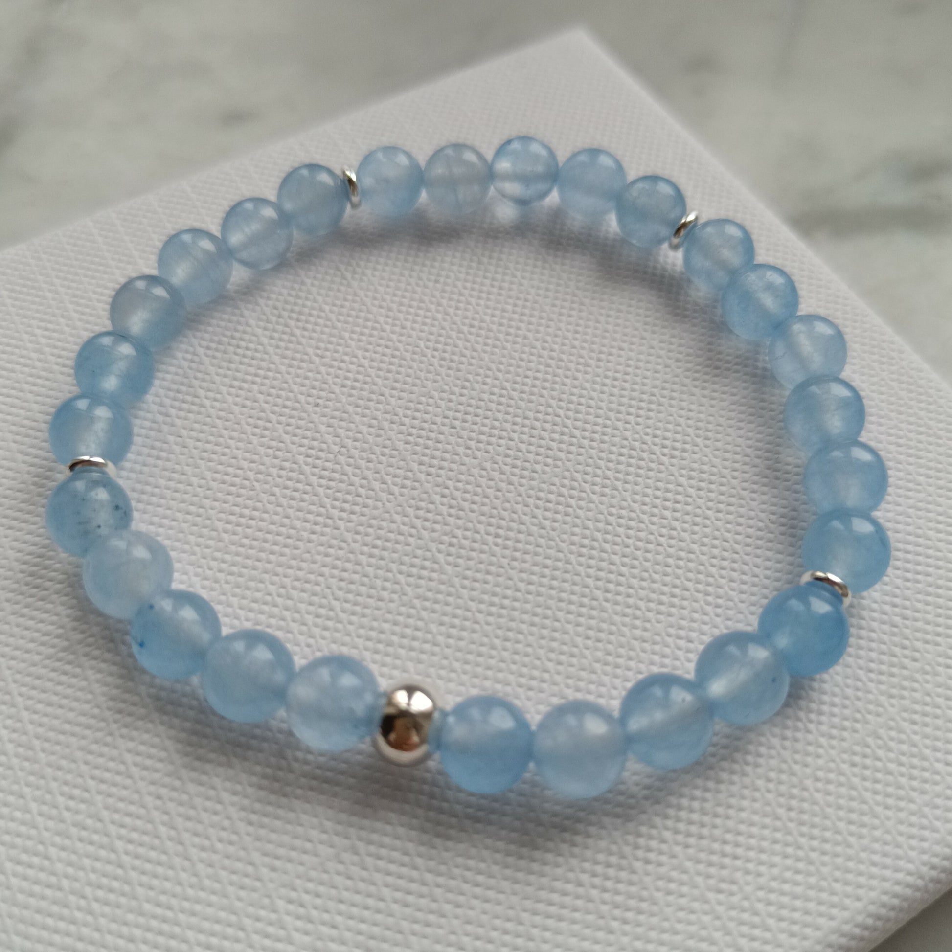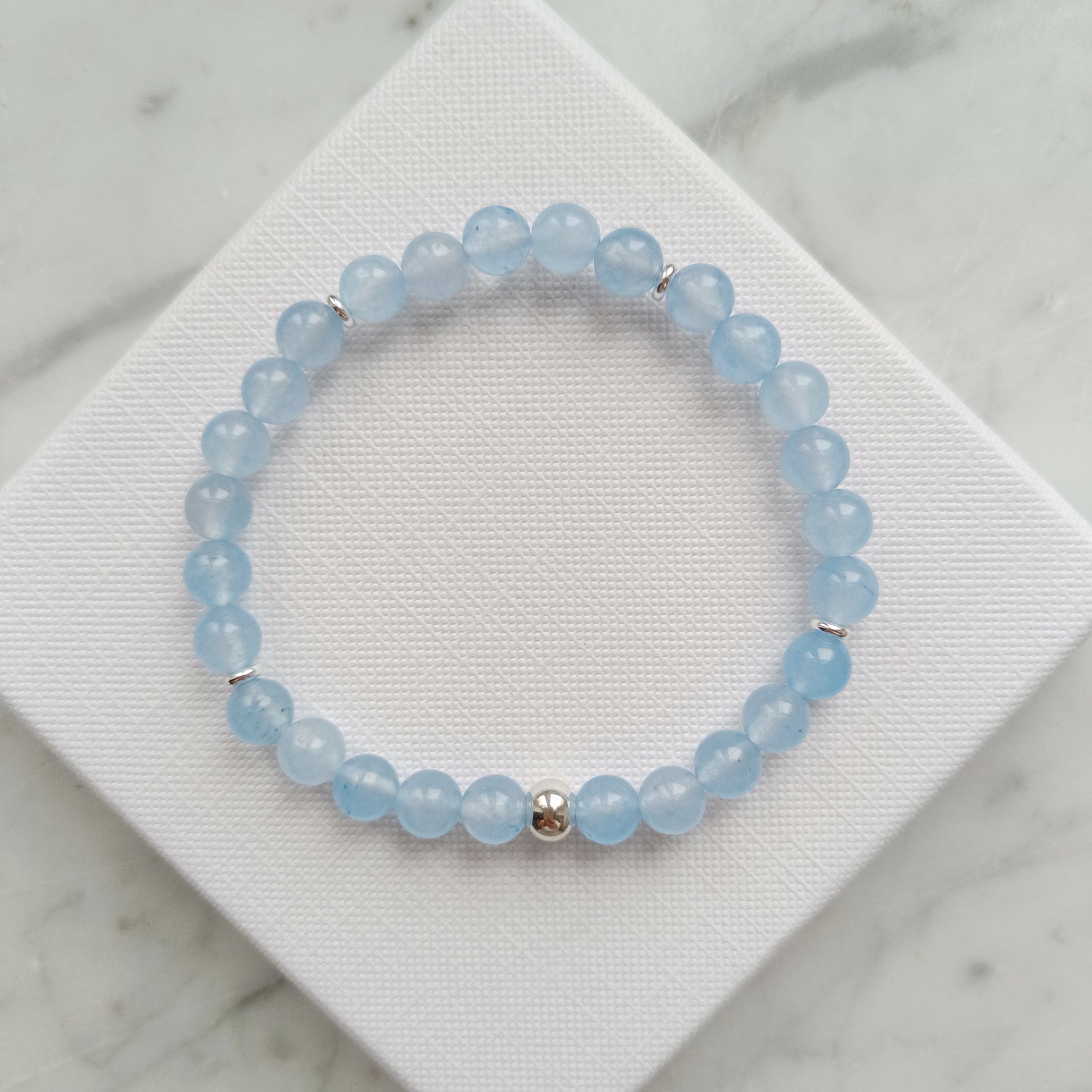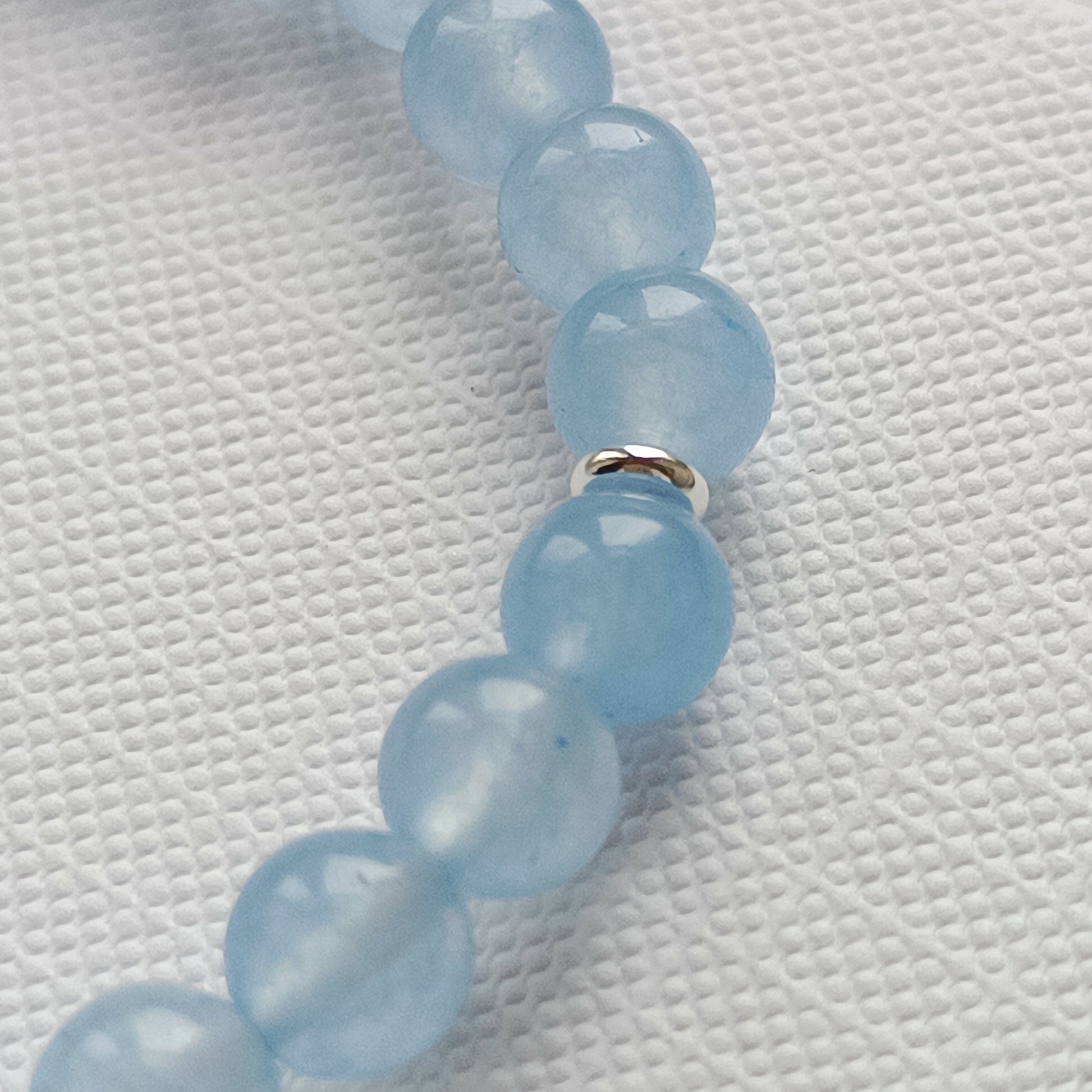 Stretcharmband aus gefärbter Jade in aquamarinblau mit silberner Edelstahlperle