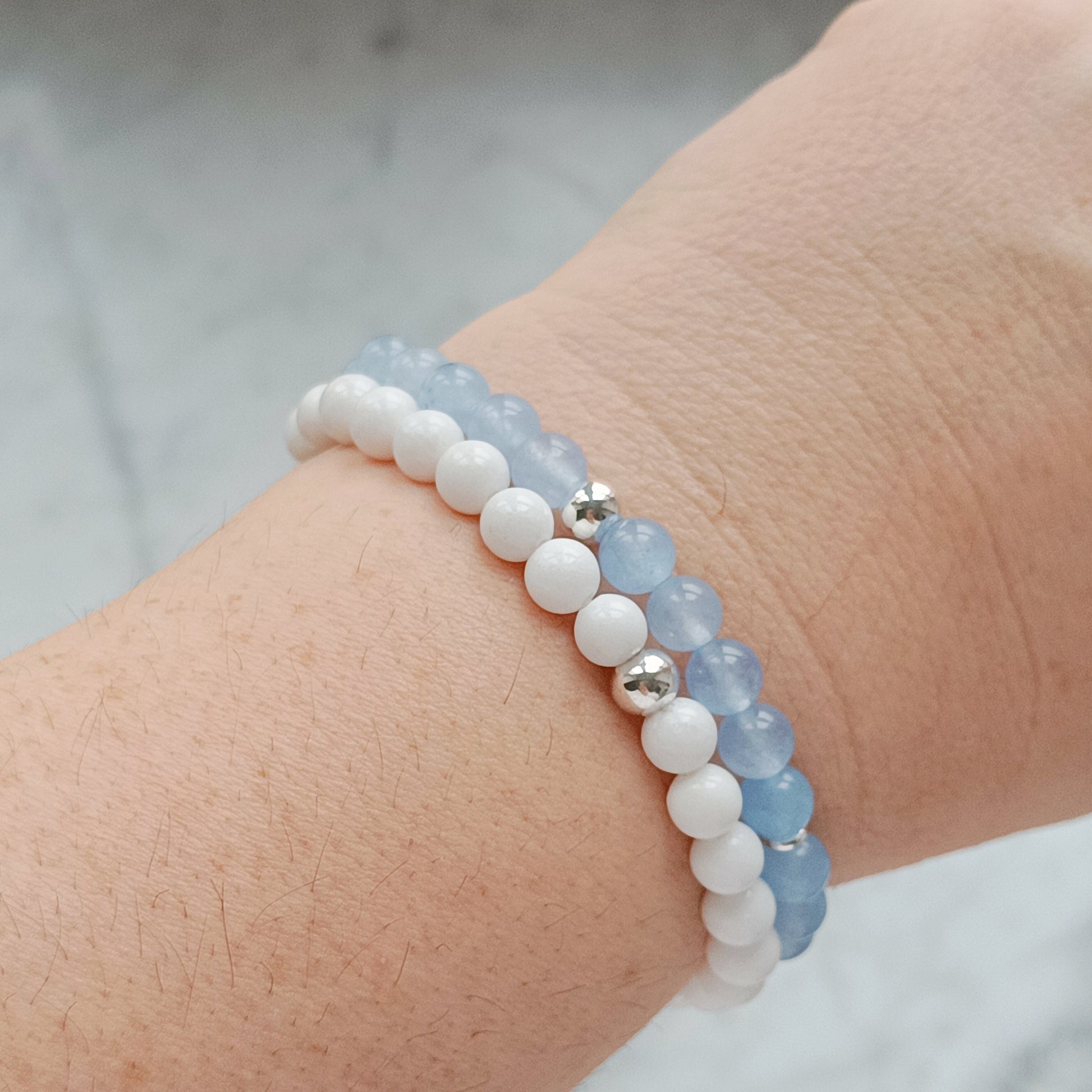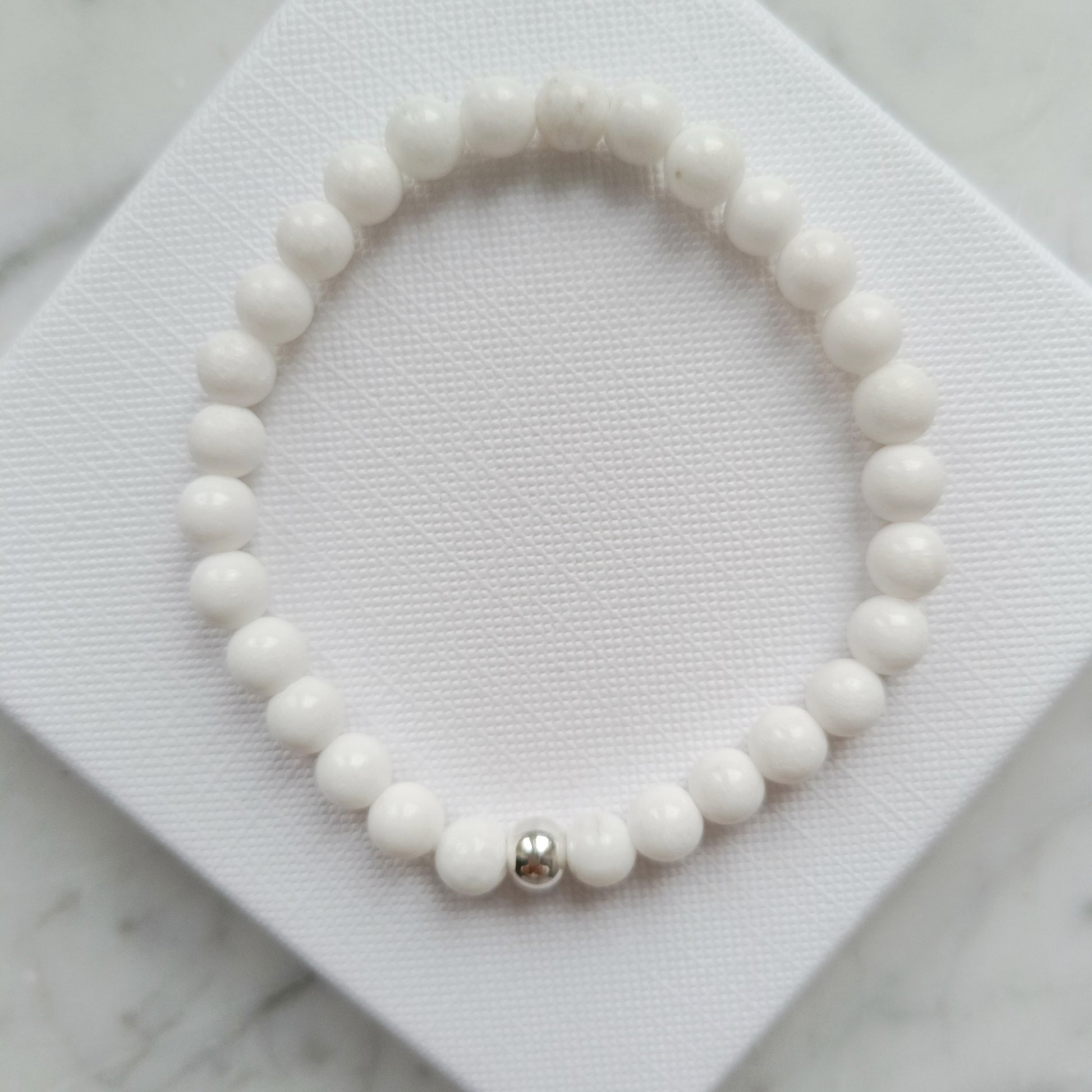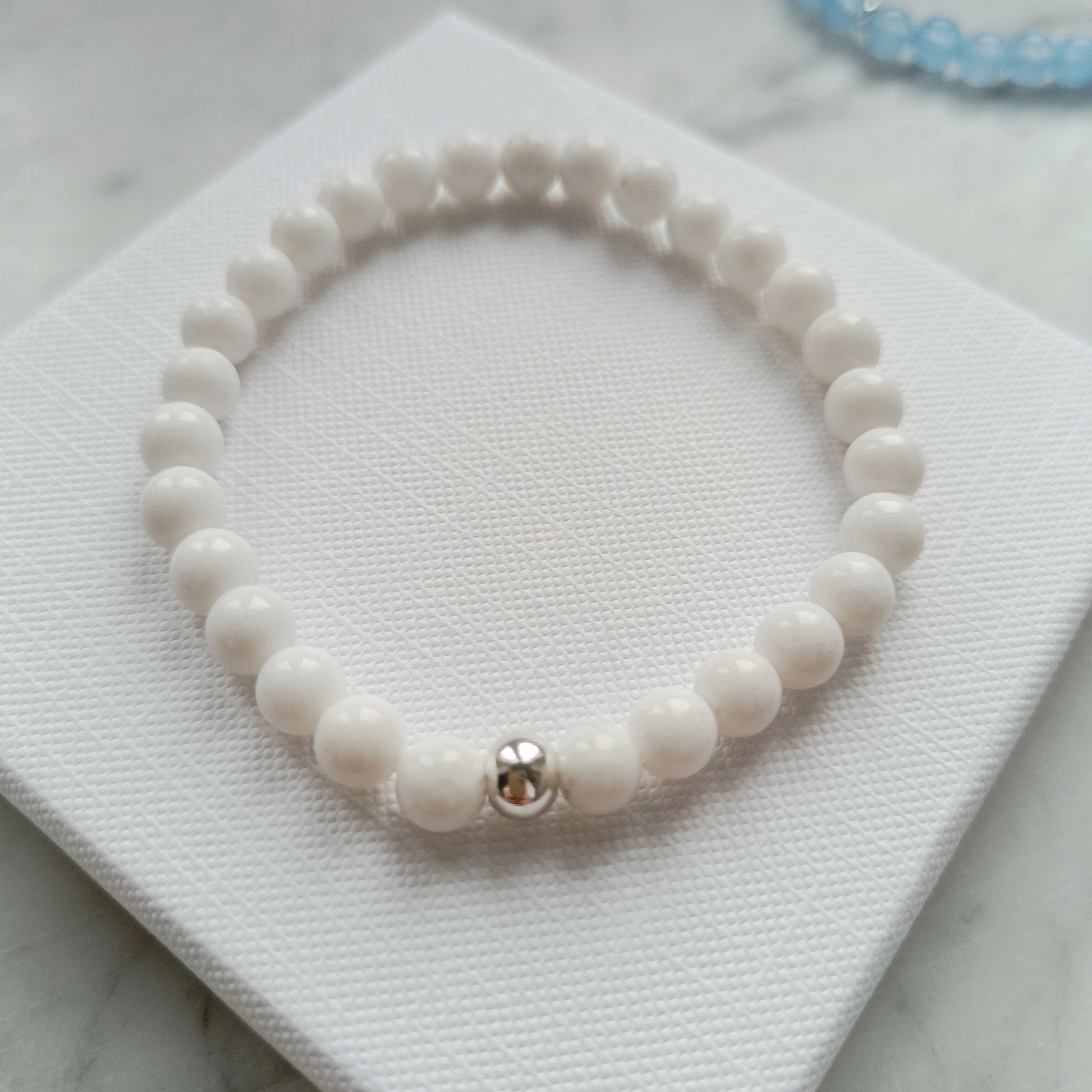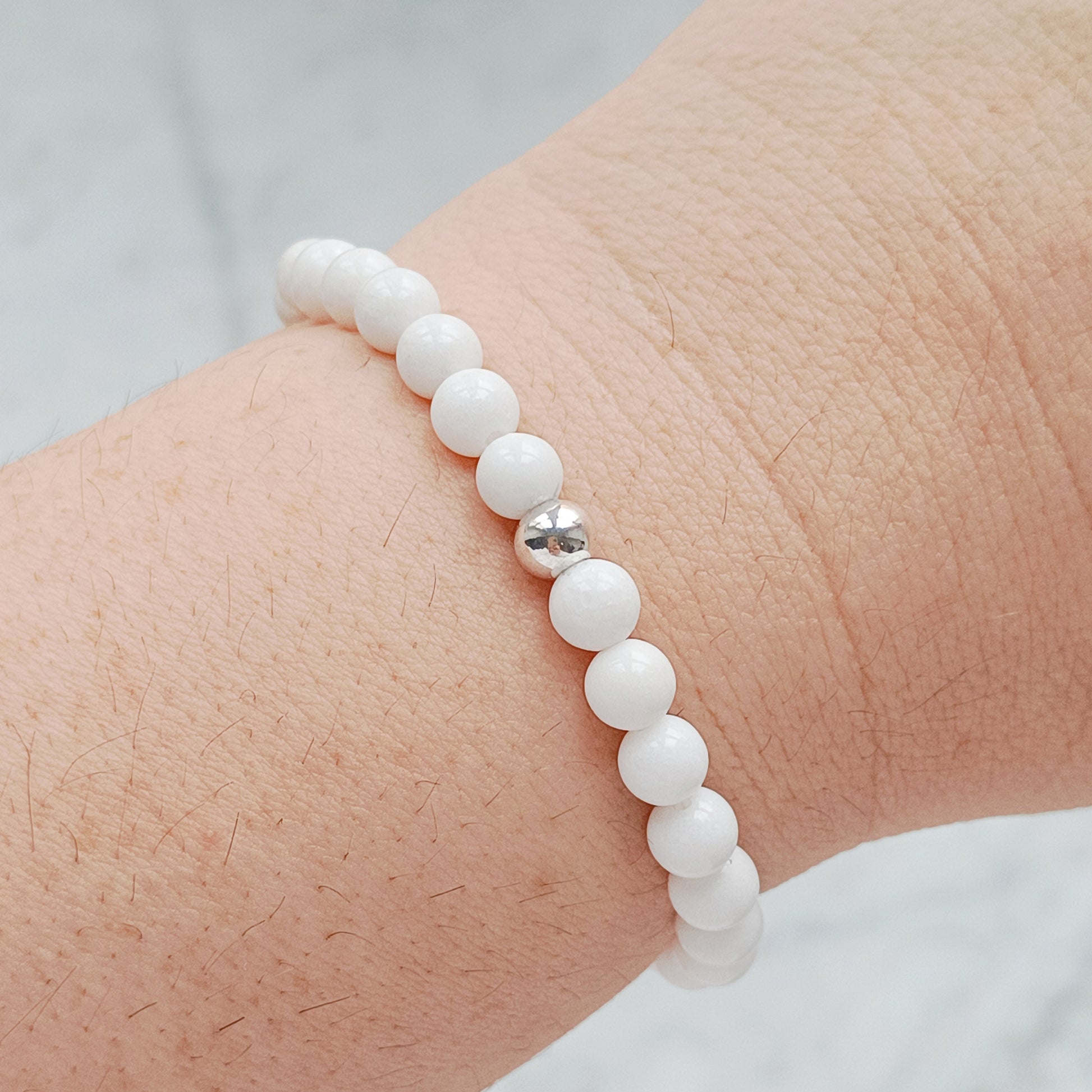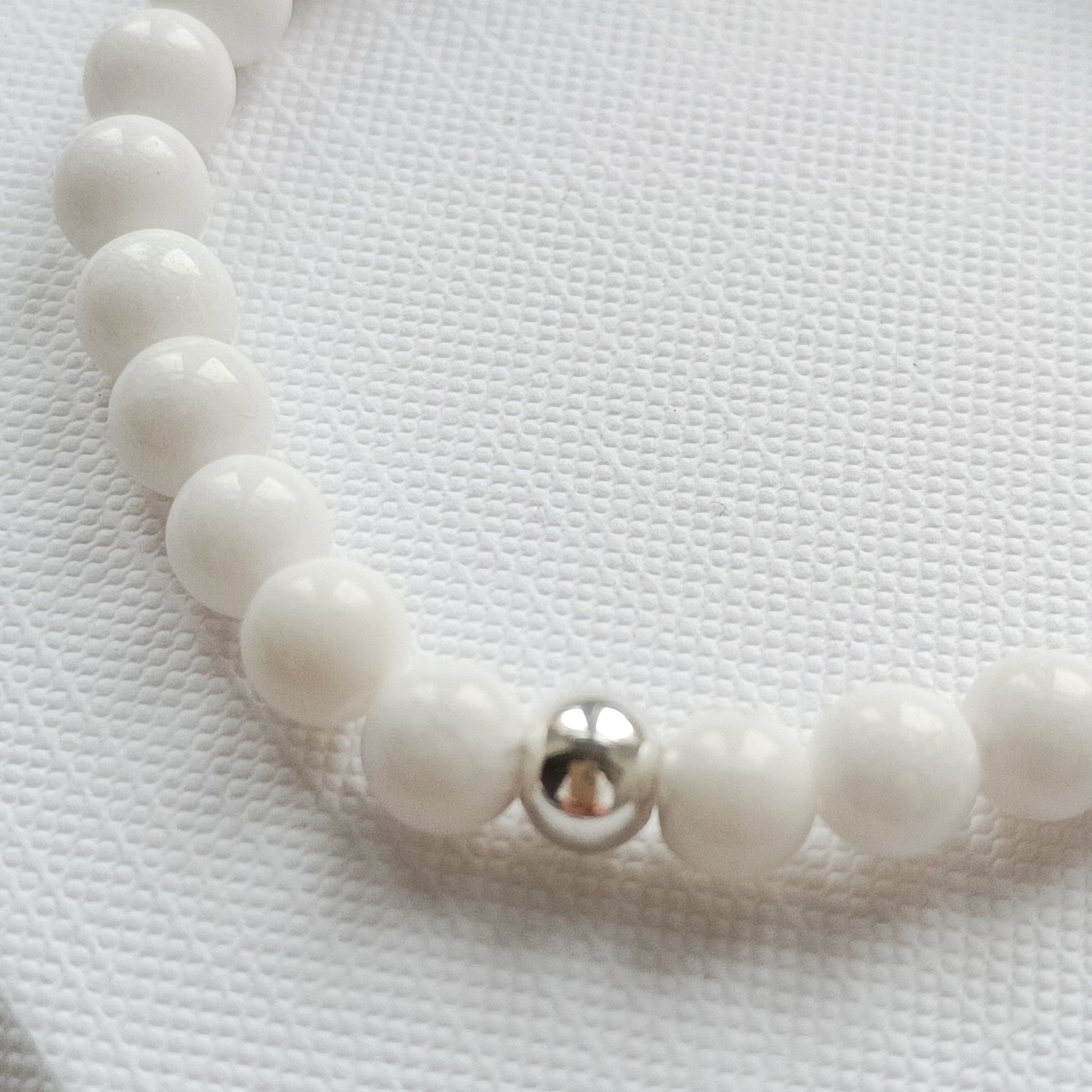 Stretcharmband aus weißer Jade mit silberner Edelstahlperle