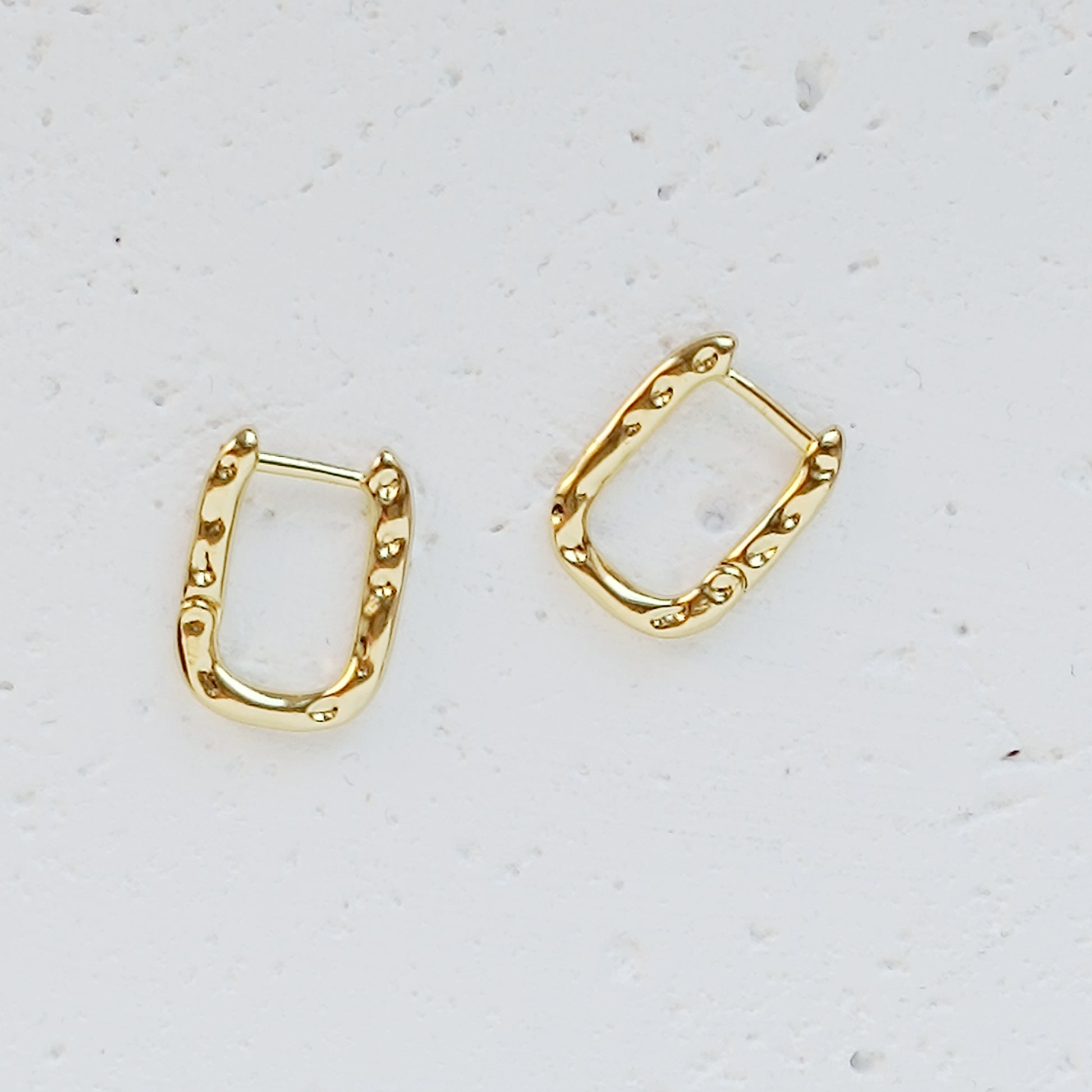 Ohrringe gehämmertes Finish in Rechteckform aus Messing 18k vergoldet