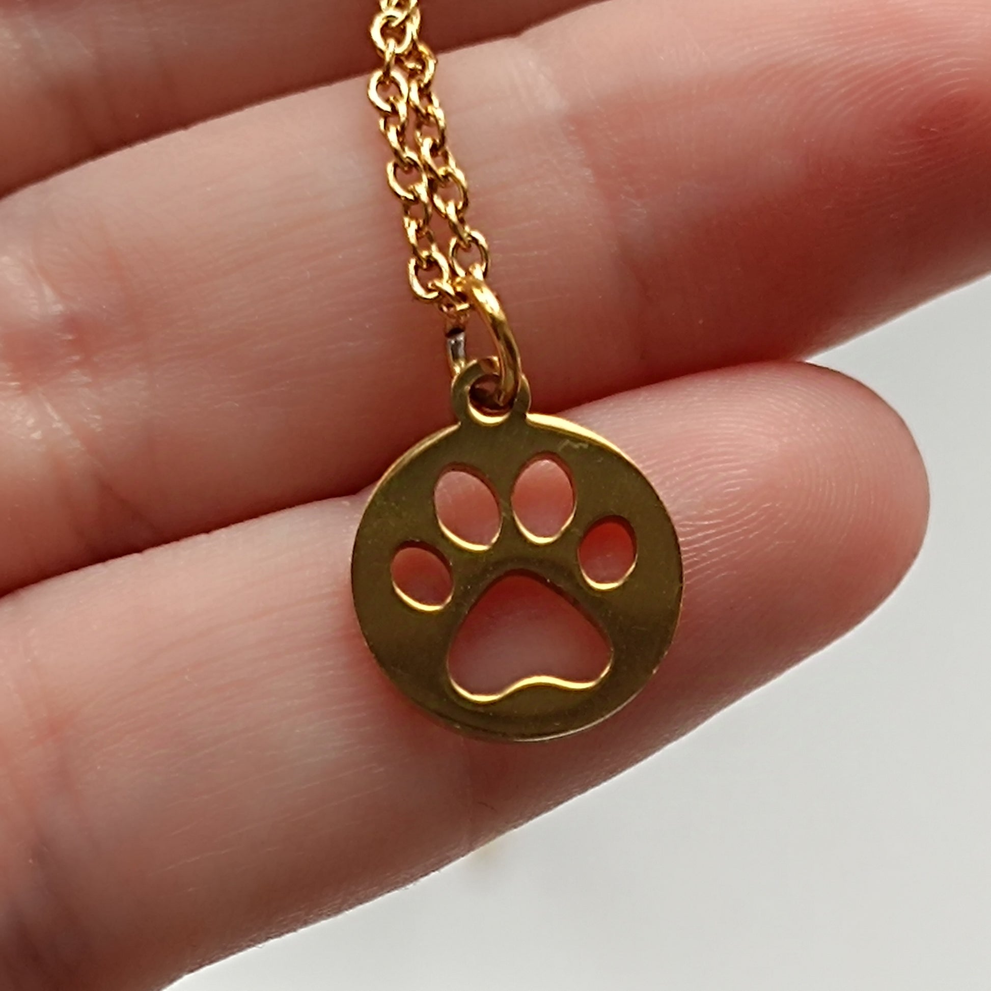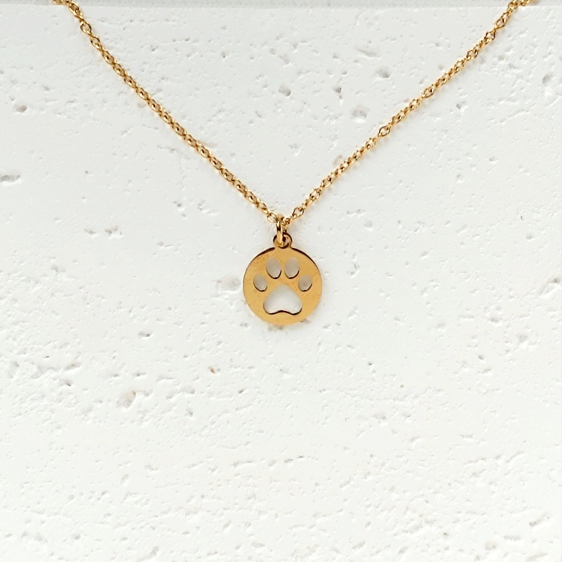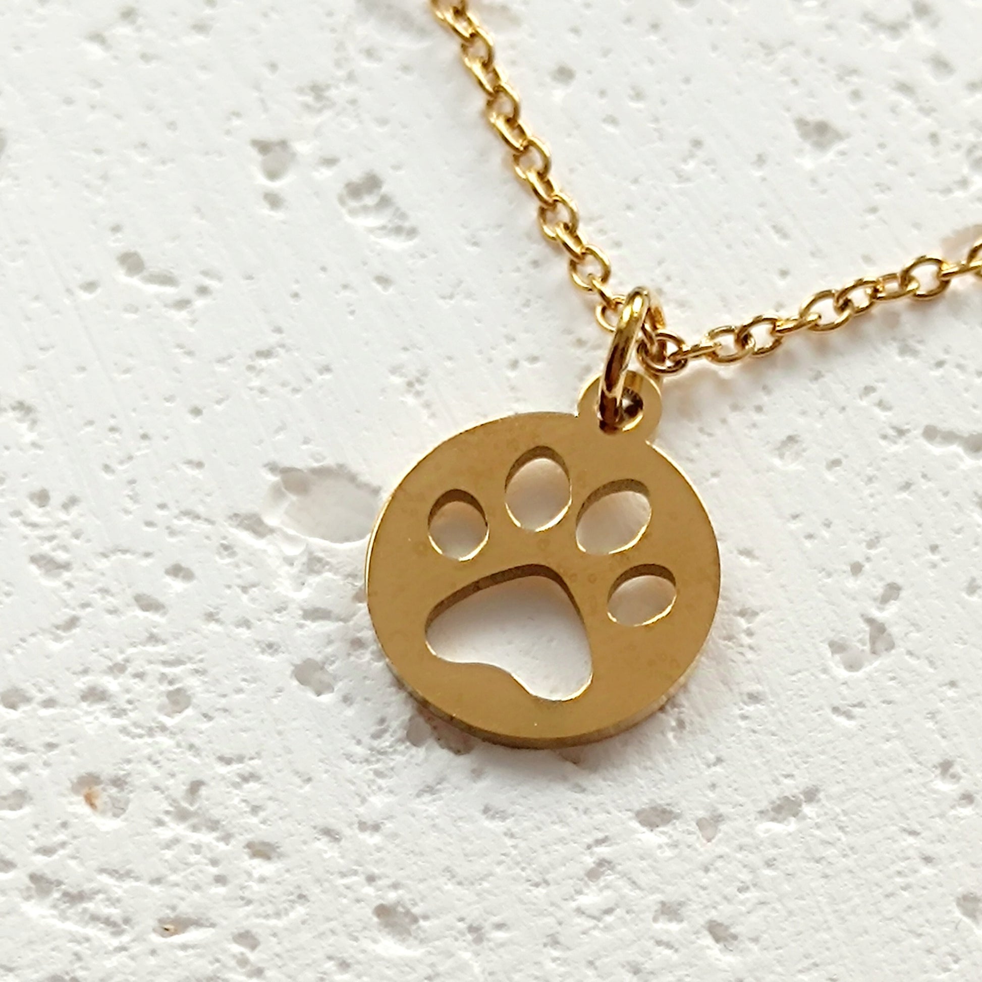 Feine Gliederkette aus Edelstahl mit rundem Anhänger und niedlichem Pfotenabdruck.