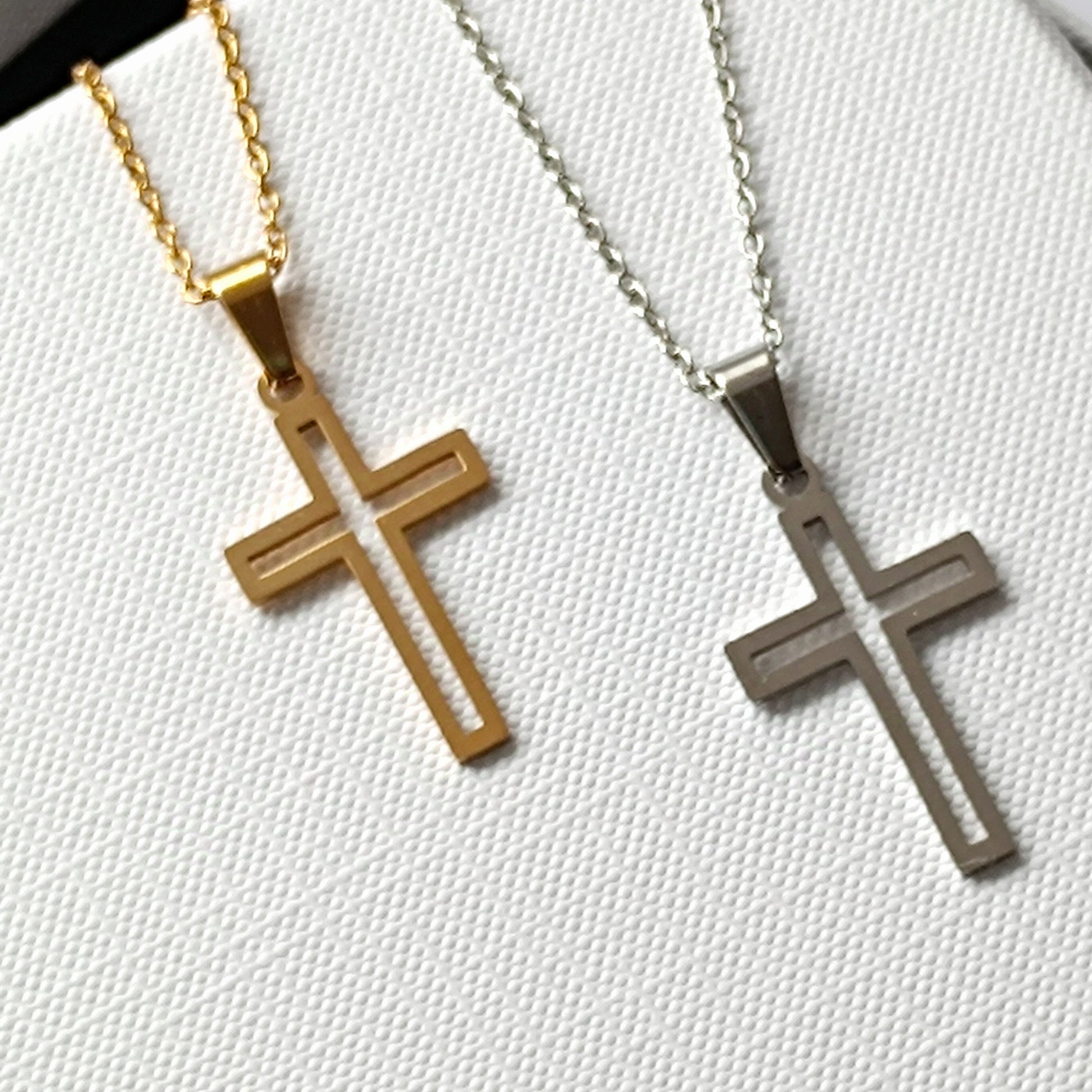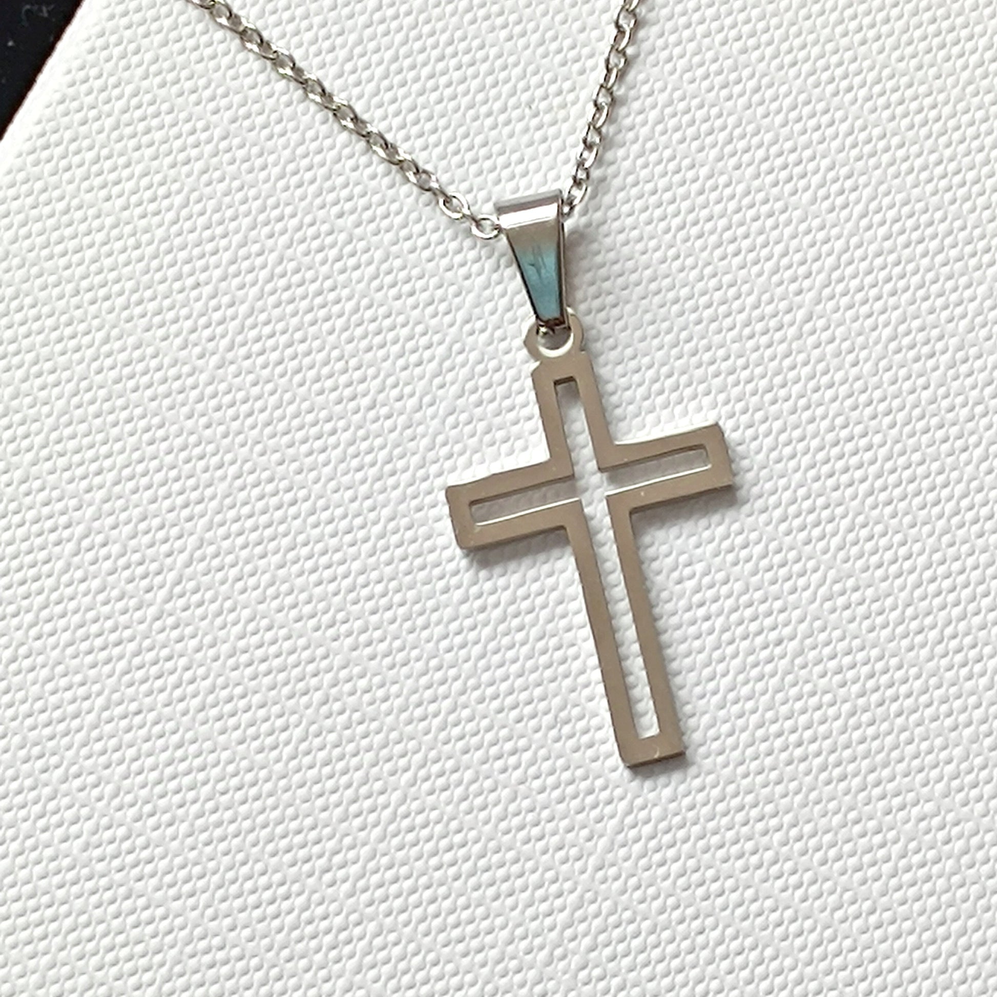 Diese Halskette mit Kreuzanhänger aus Edelstahl ist eine klassische Geschenkidee für Jungen und Mädchen zur ersten heiligen Kommunion.
