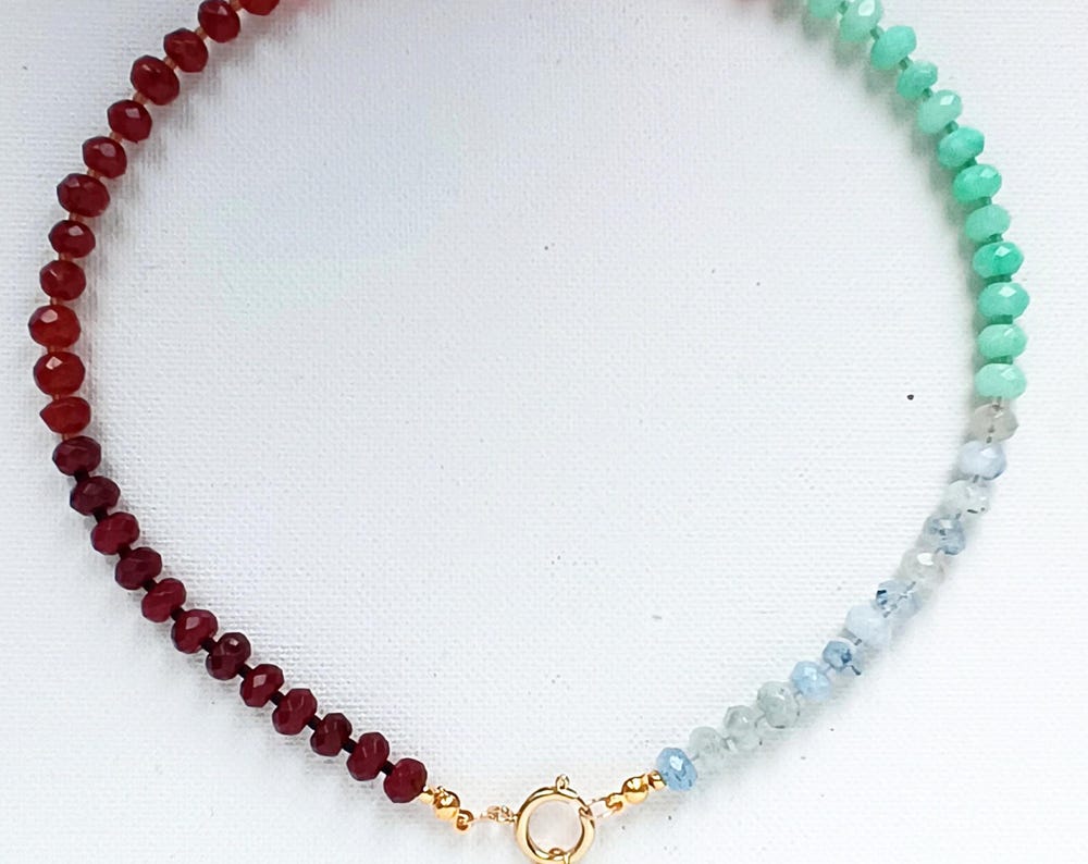 Halskette aus gefärbten Jaderondellen mit Federring Verschluss aus Edelstahl