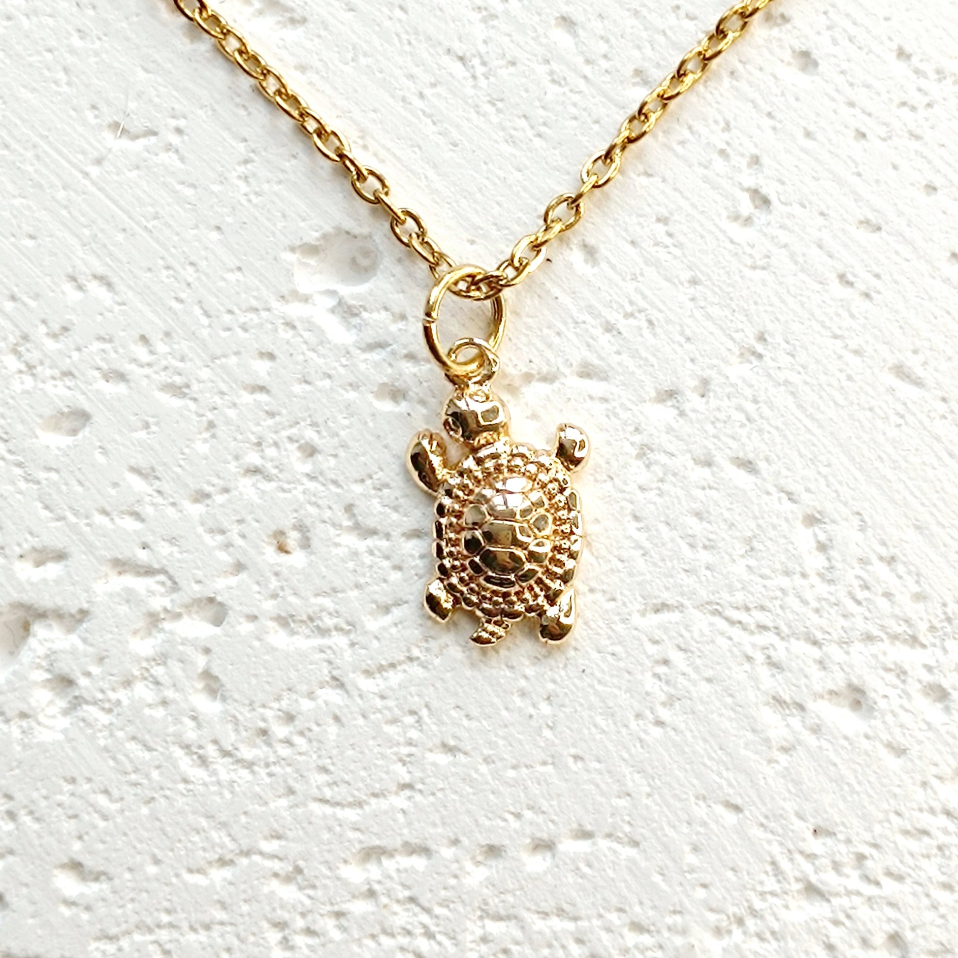 Halskette aus Edelstahl mit niedlichem vergoldetem Schildkröten Anhänger.
