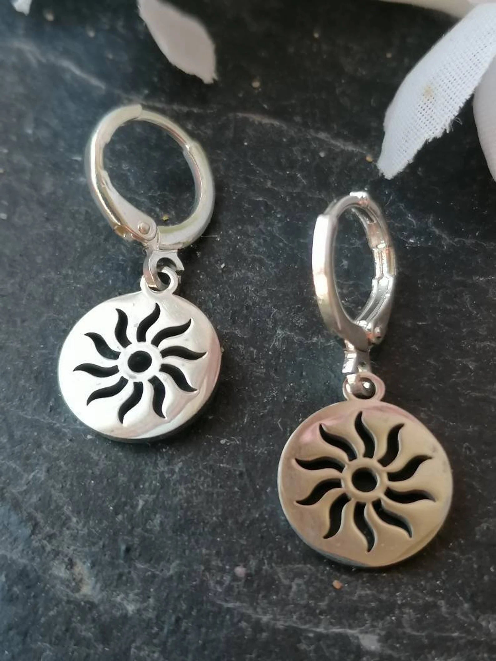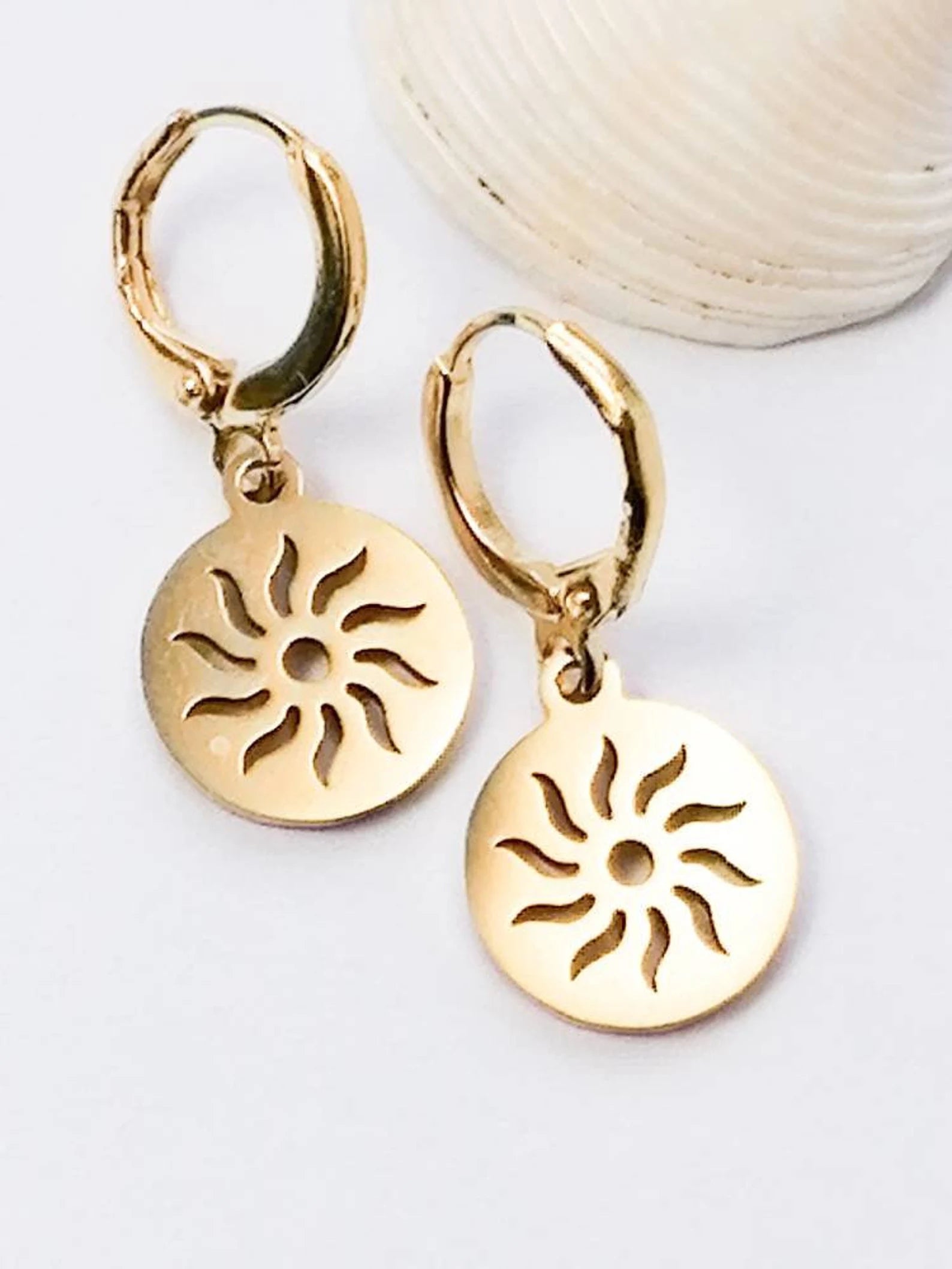 Huggie Ohrhänger mit Sonnenanhänger in Münzform
