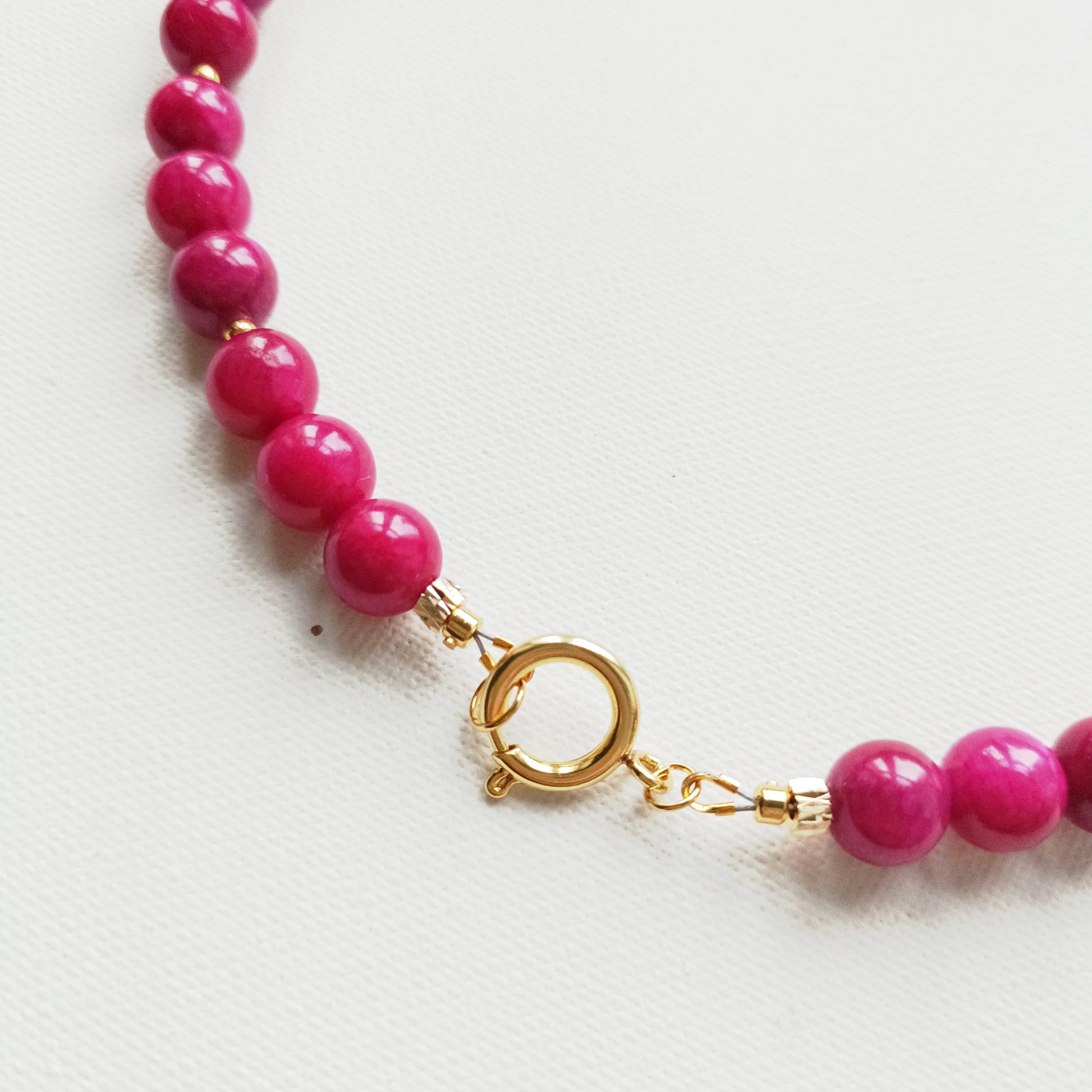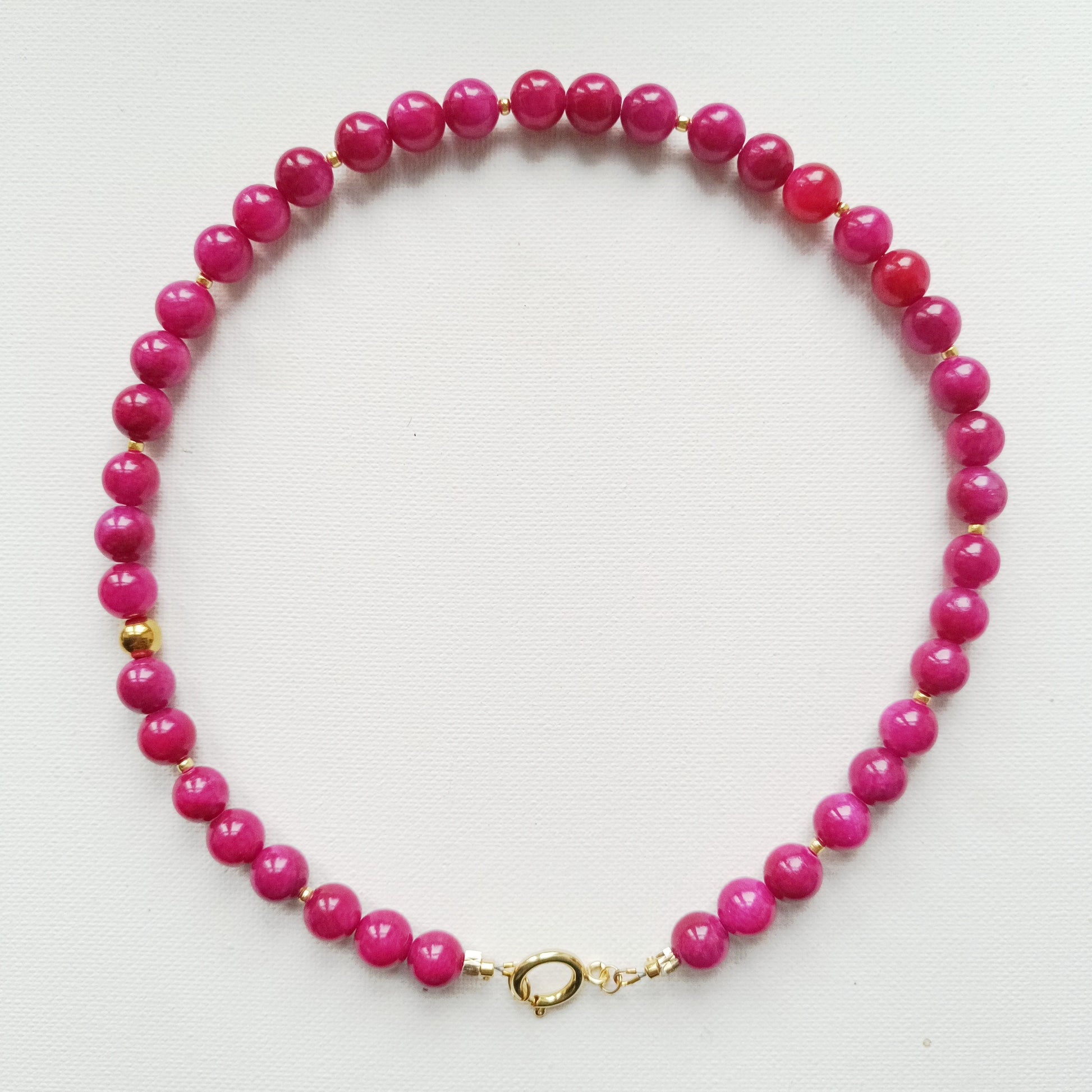 Süße Kette aus gefärbten Jadeperlen im trendigen dunklen magenta.