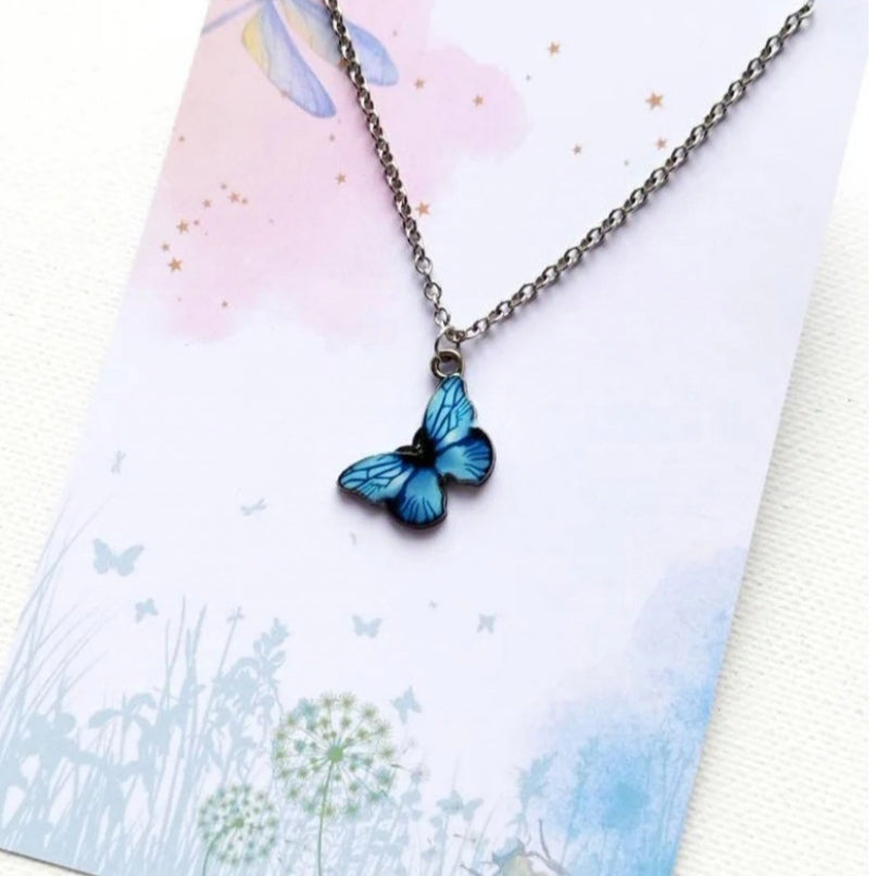 Süsse Halskette aus Edelstahl mit Schmetterlingsanhänger.