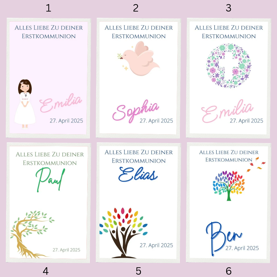 Es kann aus verschiedenen Kartenmotiven und Bandfarben gewählt werden.