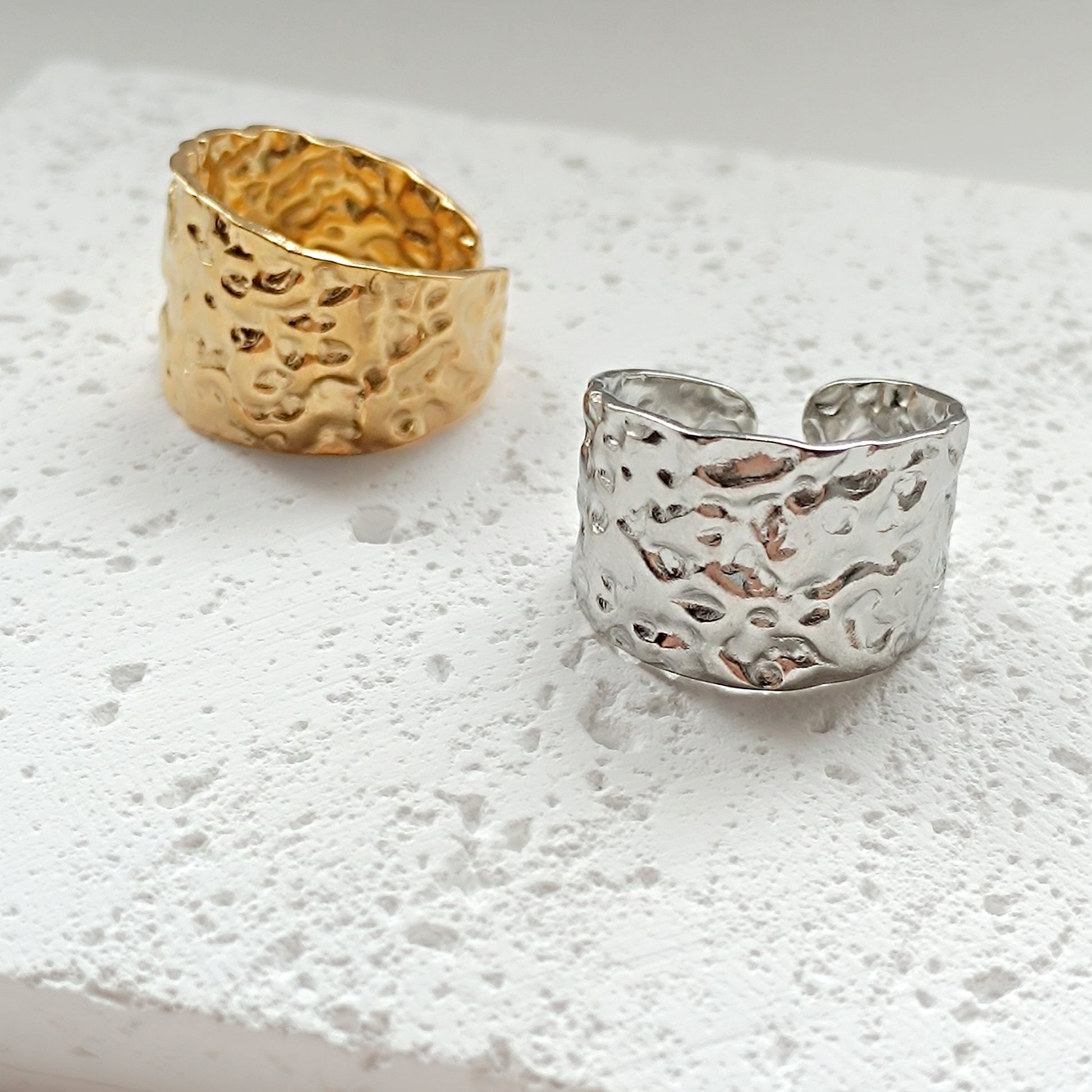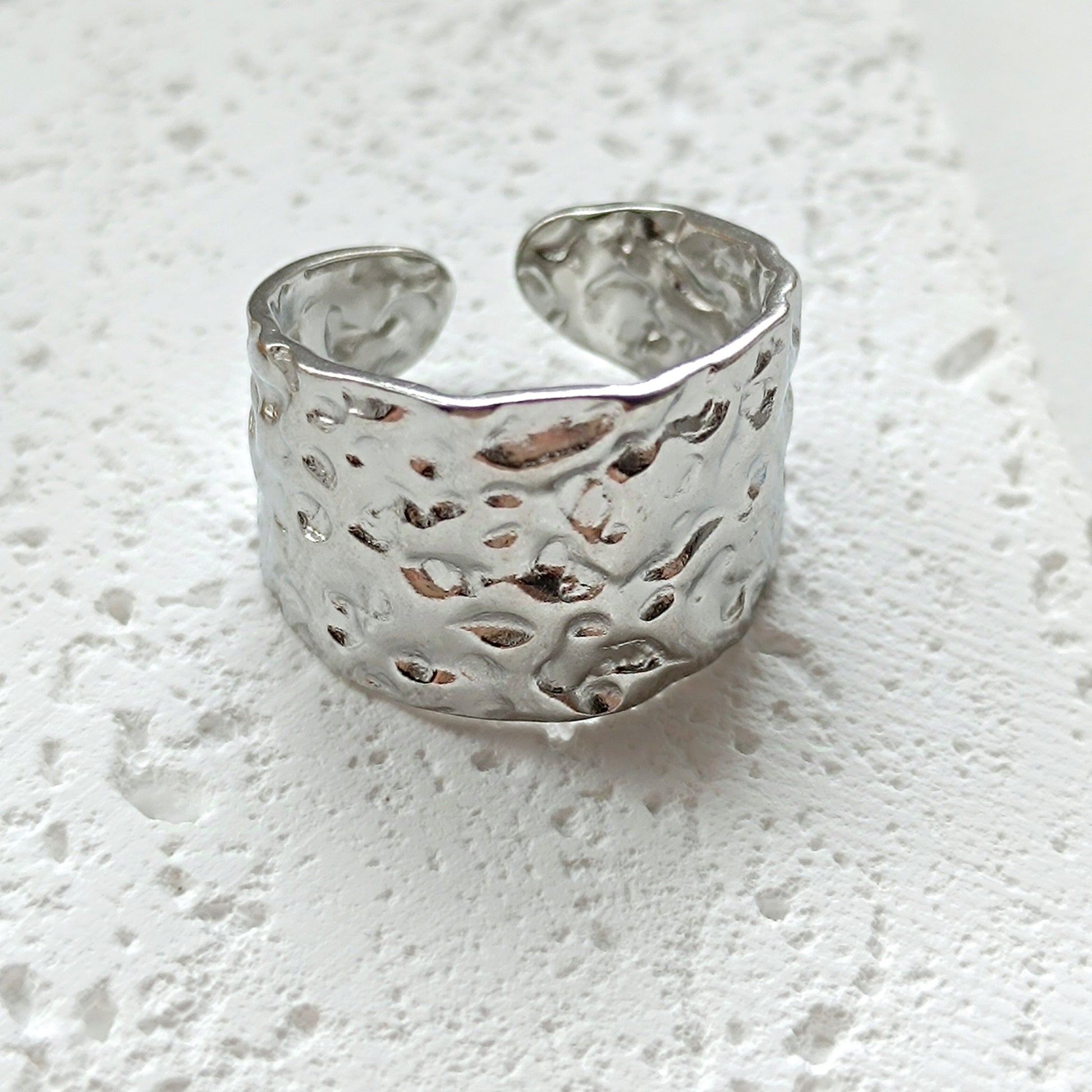 Breiter, offener Ring aus Edelstahl gehämmert