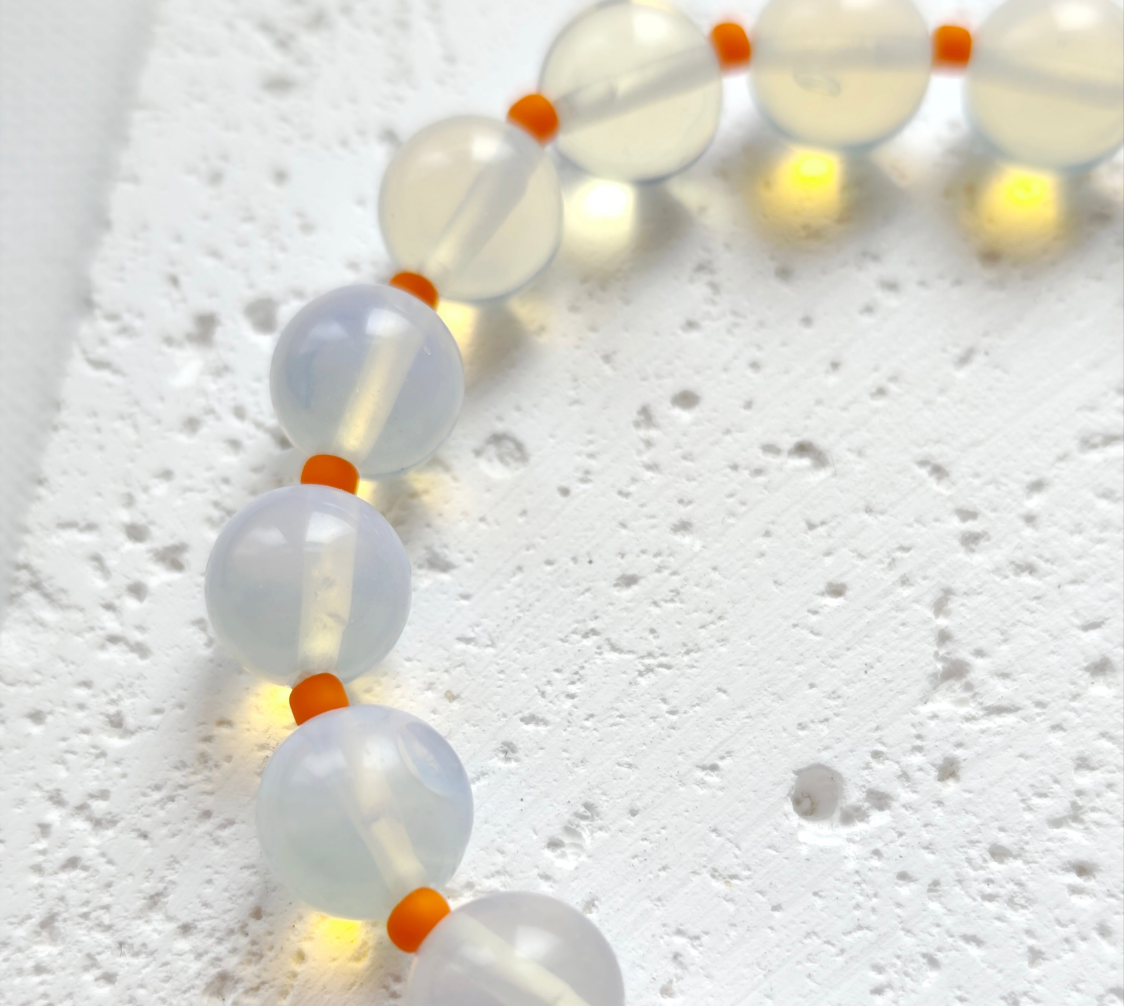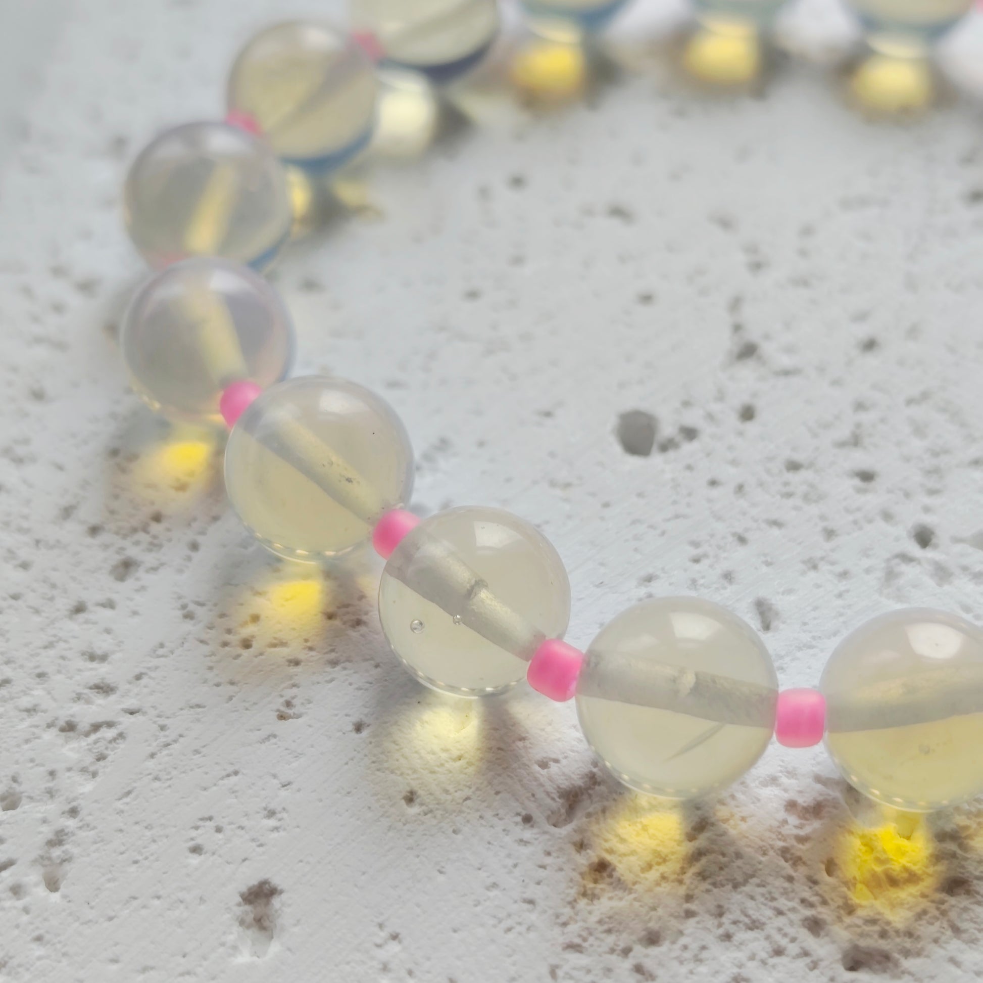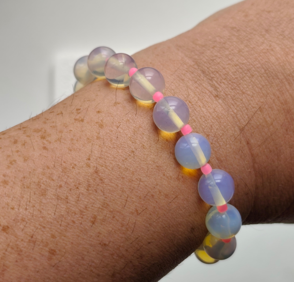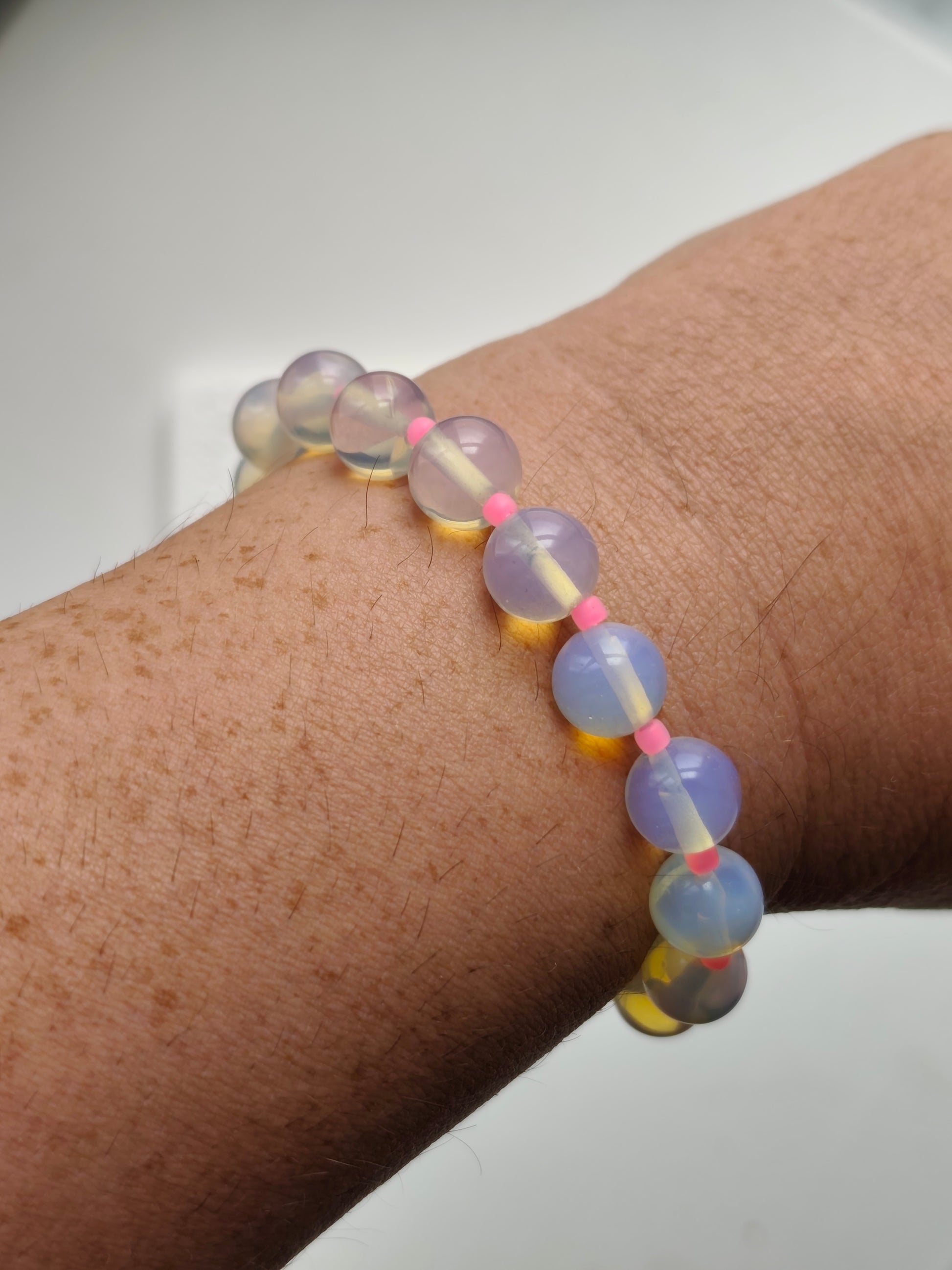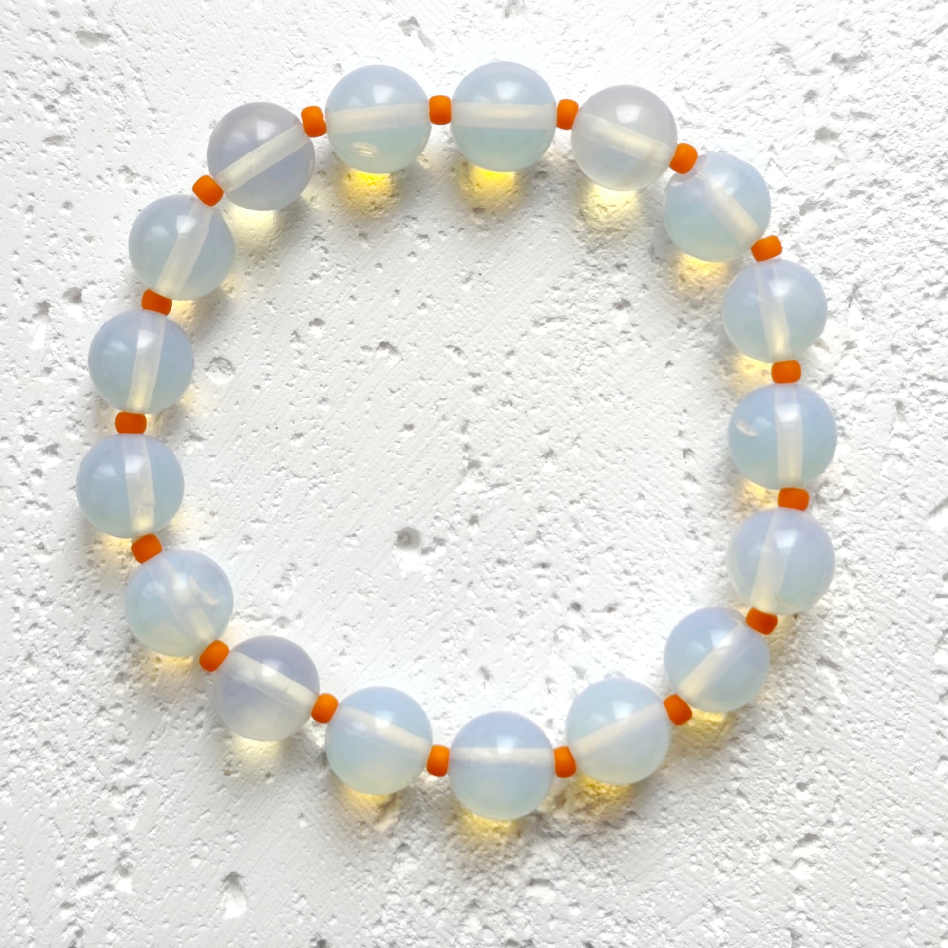 Statement Armband aus Opalit Kugeln mit Toho Glasperlen in pink oder orange