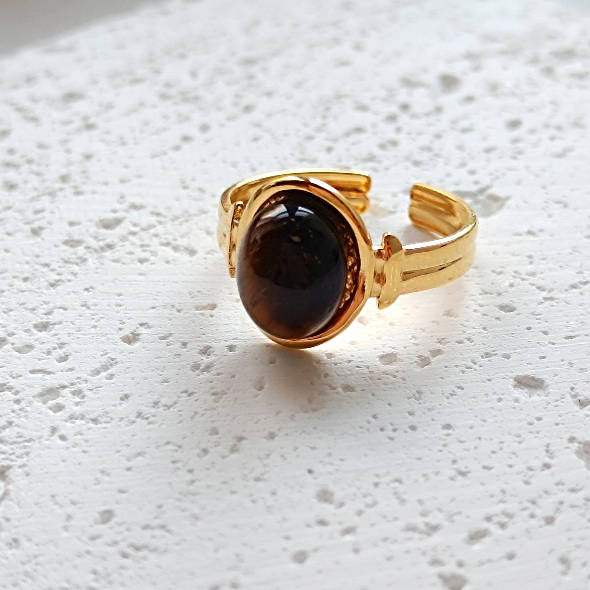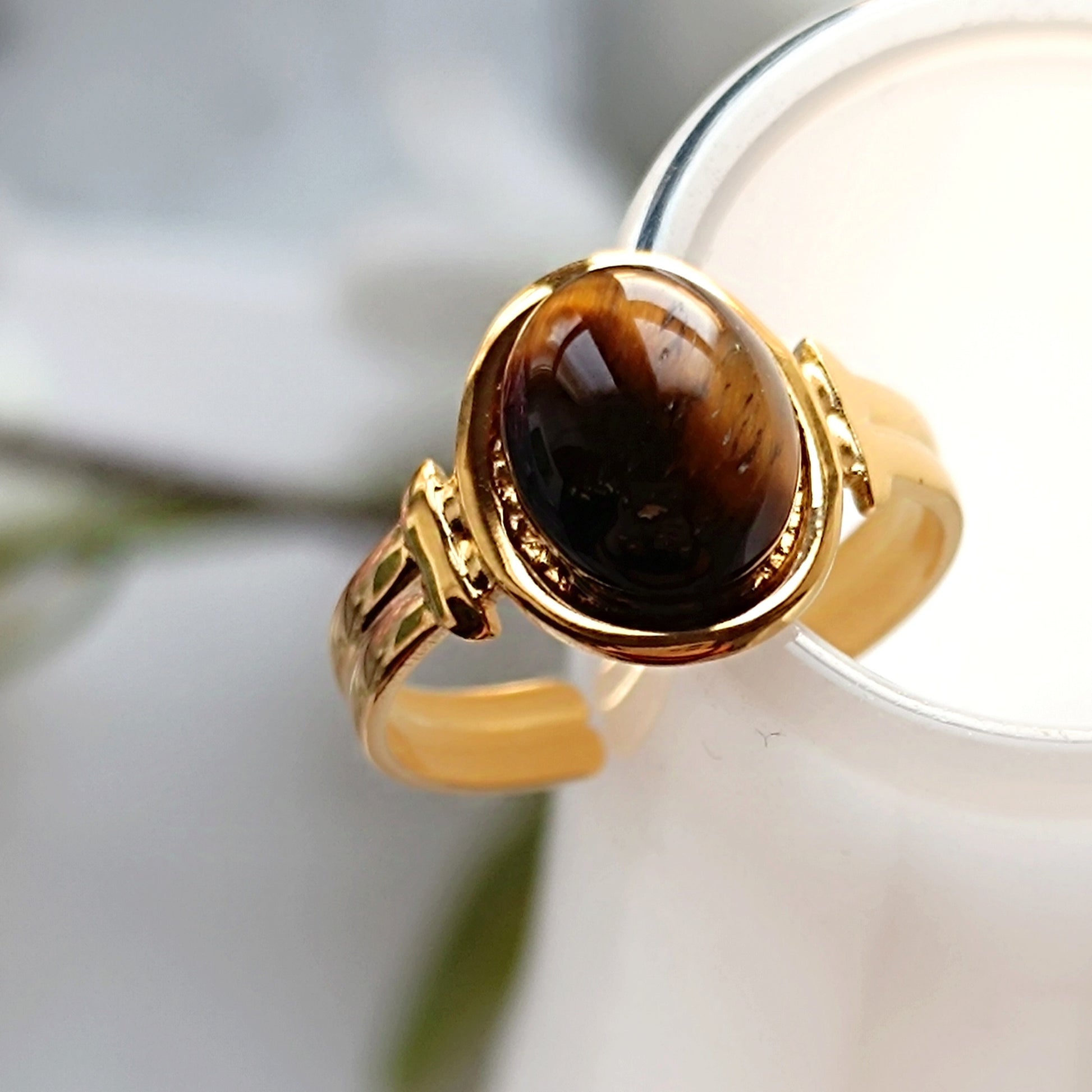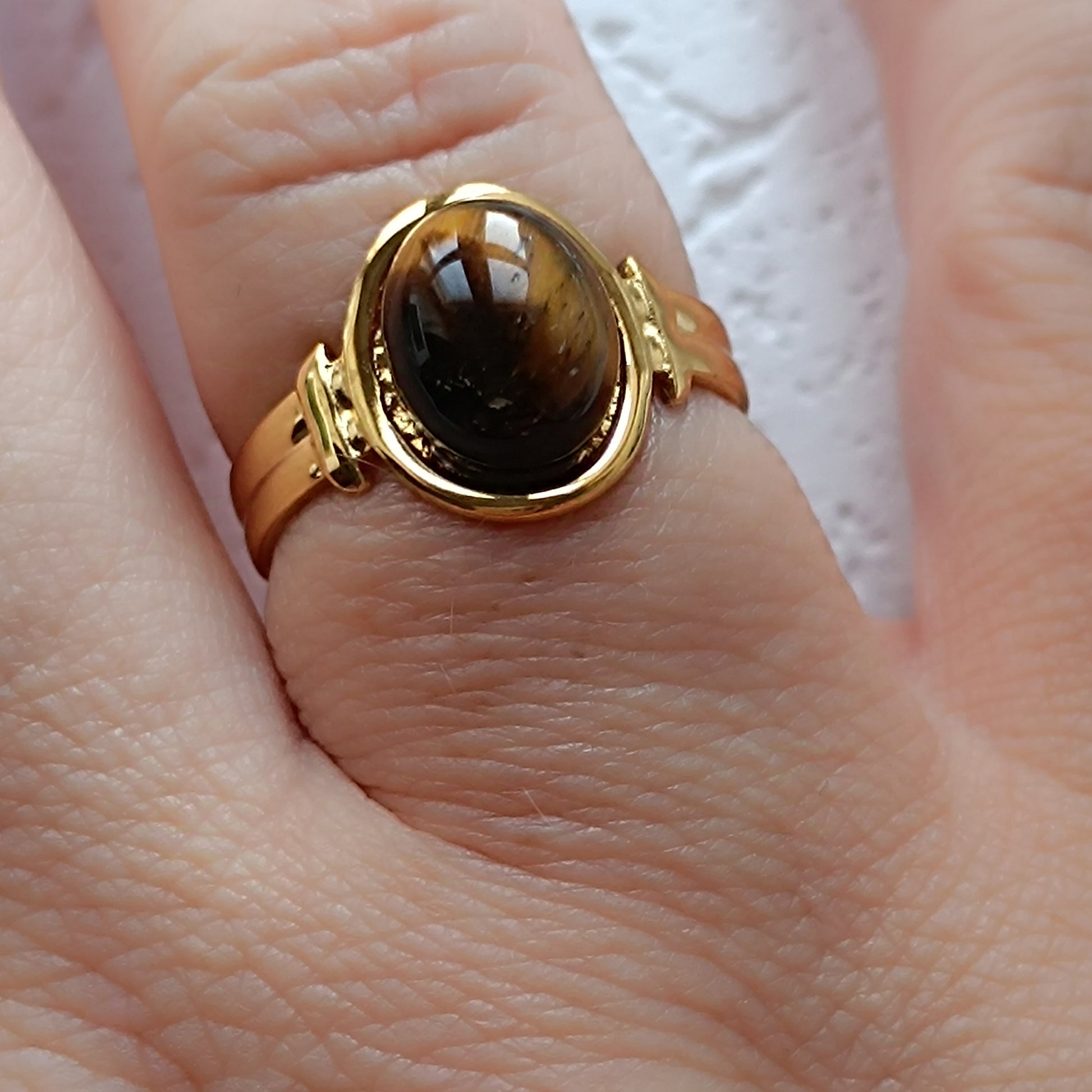 Statement Ring im klassischen Look mit ovalem Tigerauge Stein.