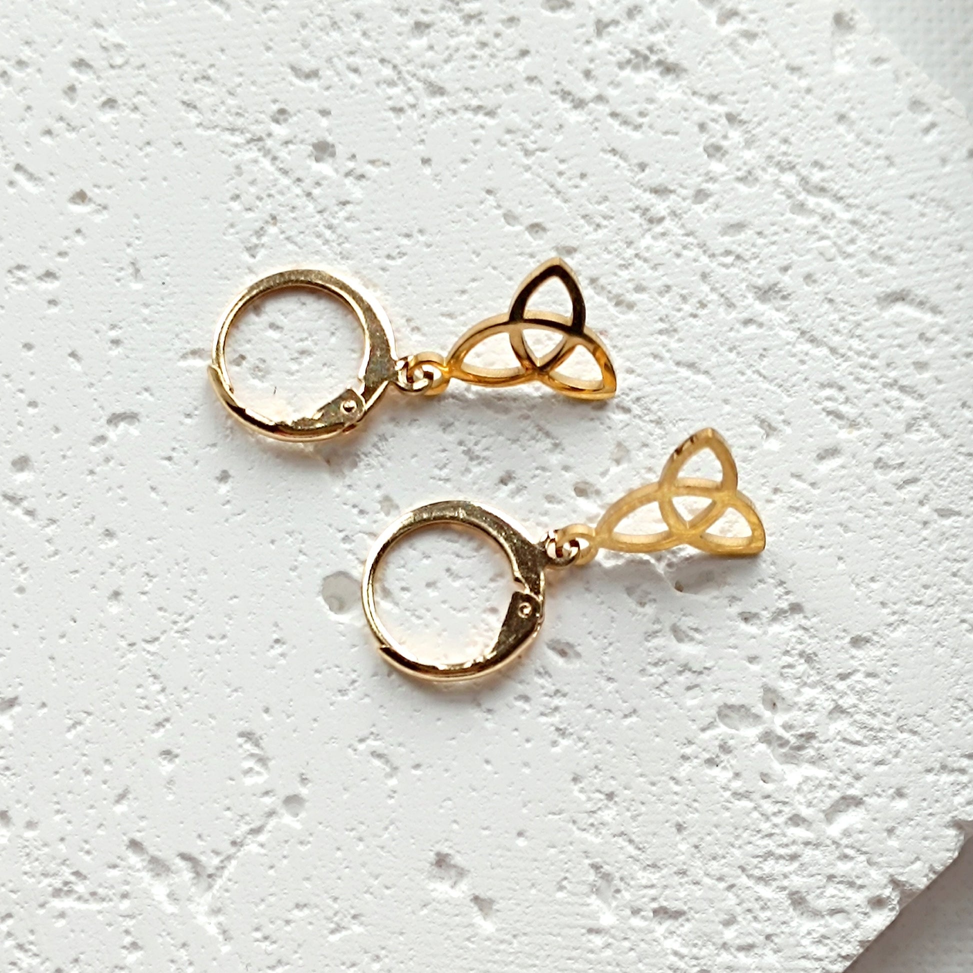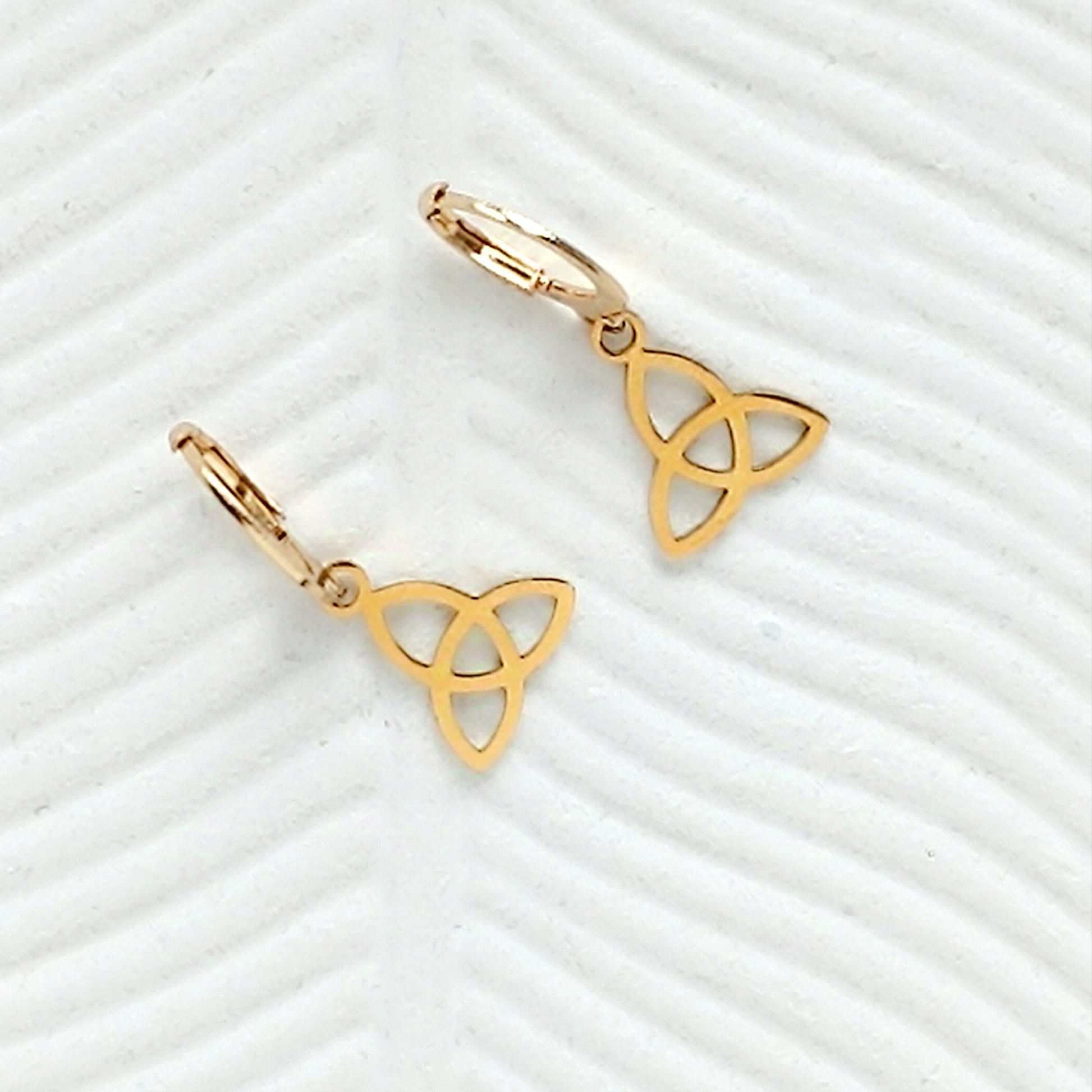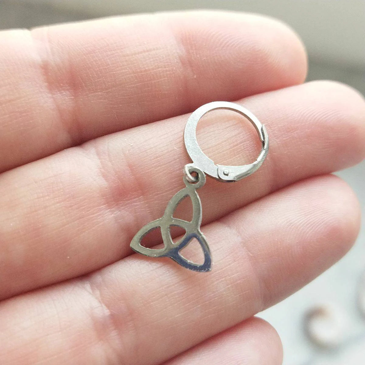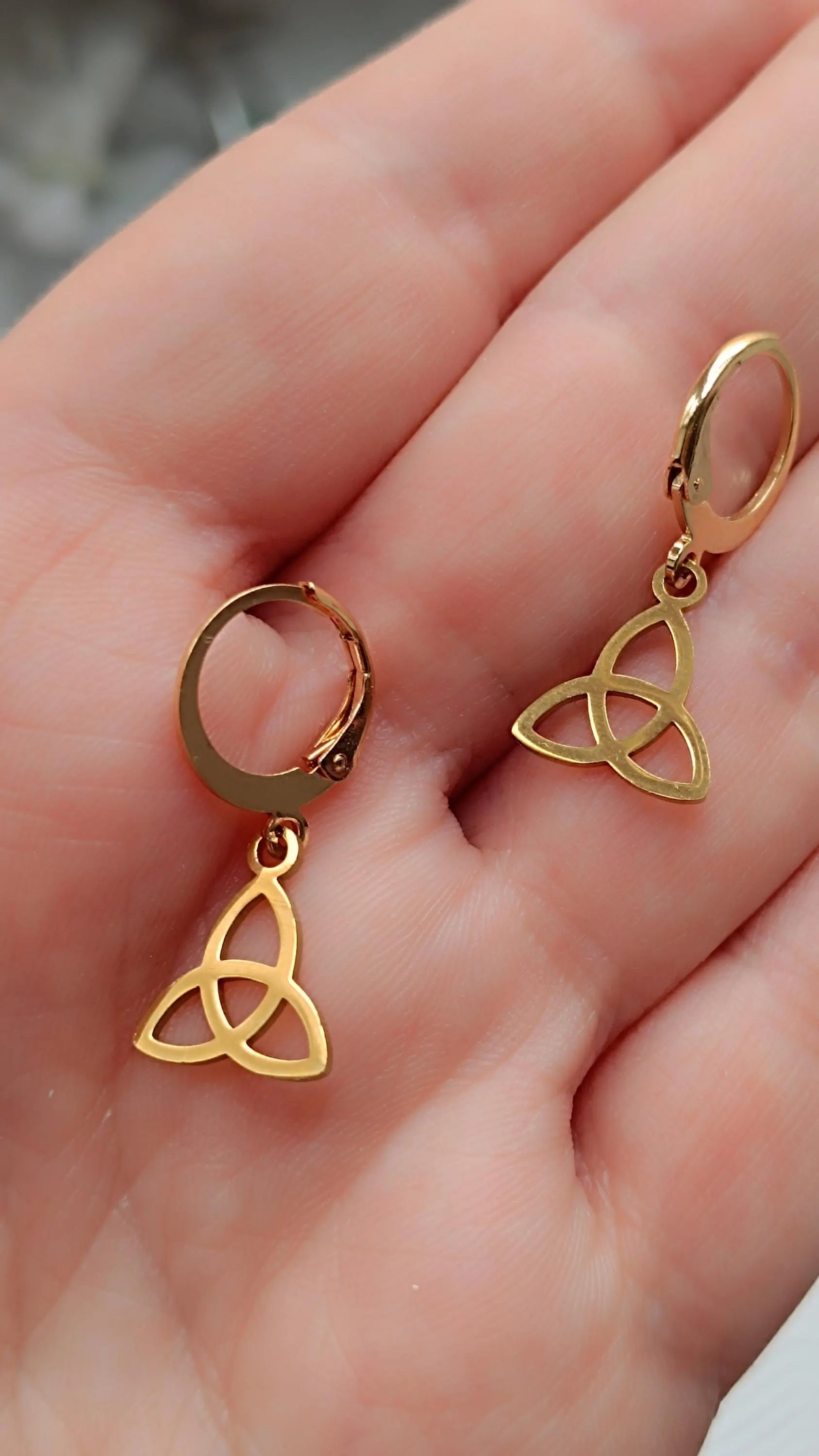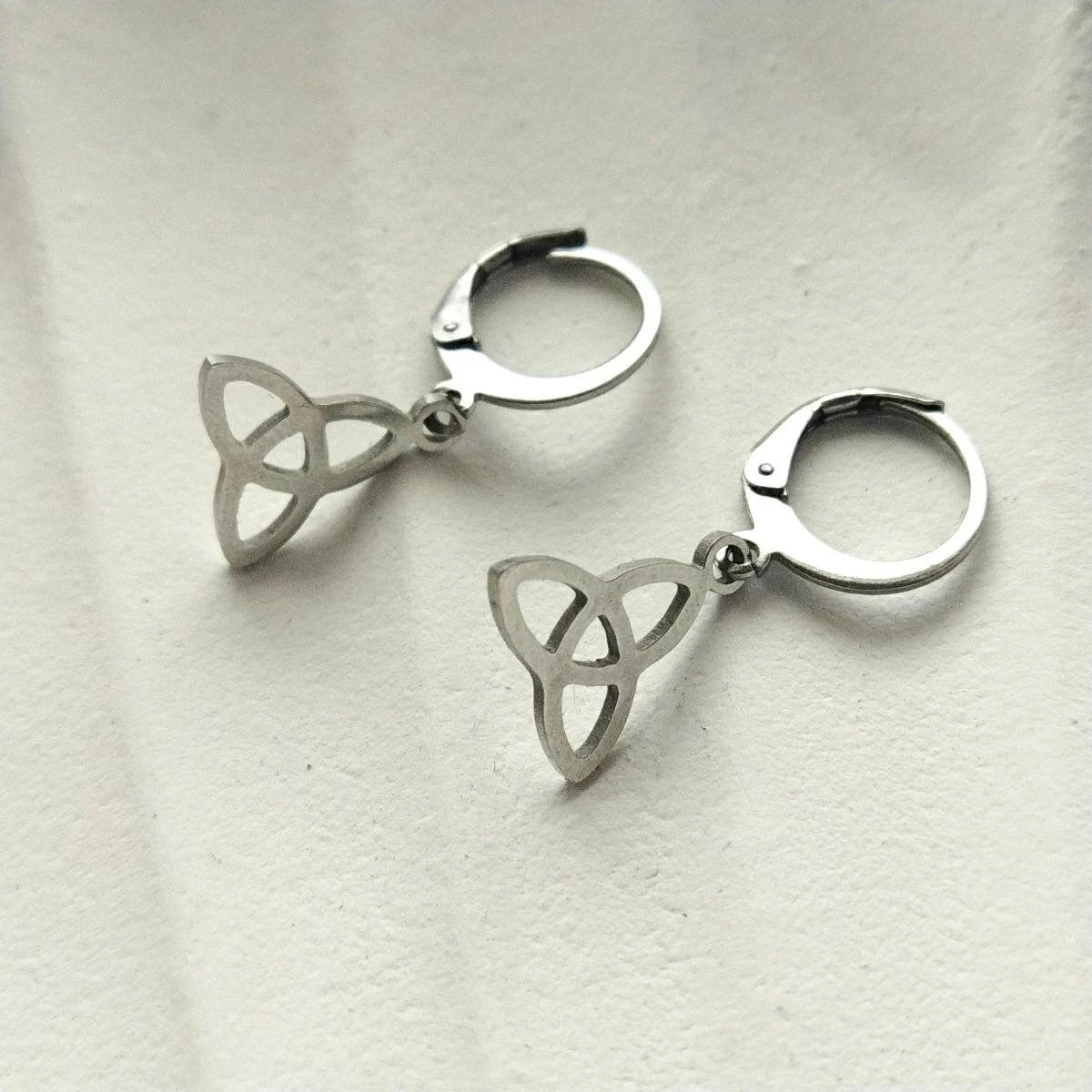 Für alle Fans von keltisch inspirierten Schmuck: Ohrhänger mit keltischem Knoten der Dreisamkeit aus Edelstahl in Dreieckform.